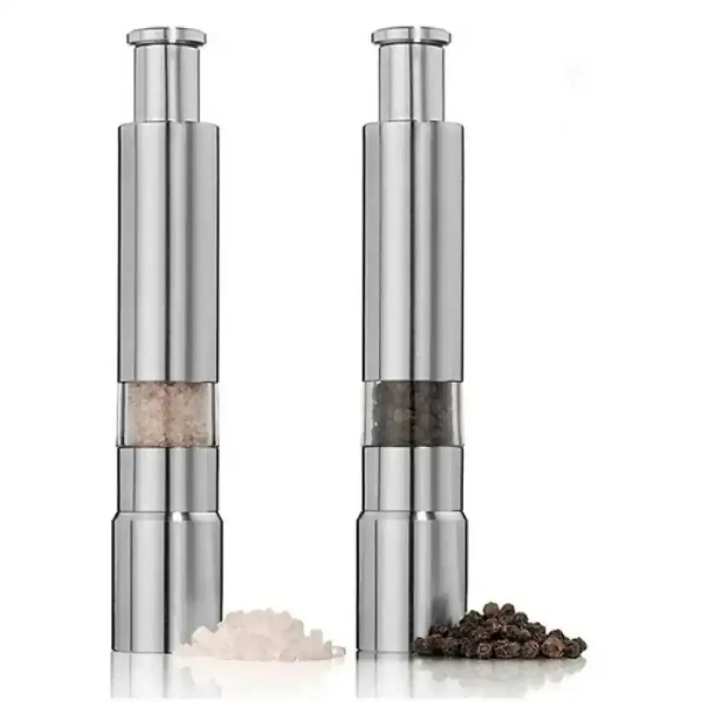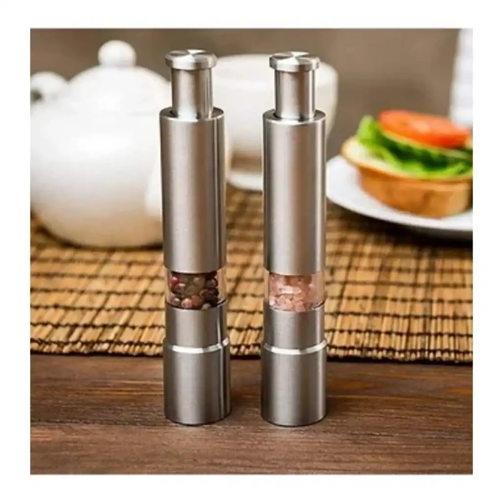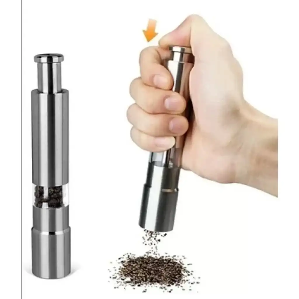 PASLANMAZ ÇELİK OTOMATİK BASMALI BAHARAT ÖĞÜTÜCÜÜrün ÖzellikleriYenilikçi karabiber değirmeni, baharatları hızlı ve kolay bir şekilde dağıtarak mutfak deneyiminizi pratik hale getirir. Tek elle kullanılabilen bu değirmen, üzerine basarak baharatları öğütmenize olanak tanır. Doldurmak için alt kısmındaki vida kısmını açarak baharatları kolayca ekleyebilirsiniz. Biber, mısır, hardal tohumu ve diğer küçük boyutlu baharatların öğütülmesi için uygundur. Özellikle biber, tuz ve diğer baharat türlerini öğütmek için verimli ve kullanışlıdır. Bu otomatik öğütücü, aile mutfakları, restoranlar ve oteller için idealdir.Paket İçeriği1 adet Paslanmaz Çelik Otomatik Basmalı Baharat Öğütücü