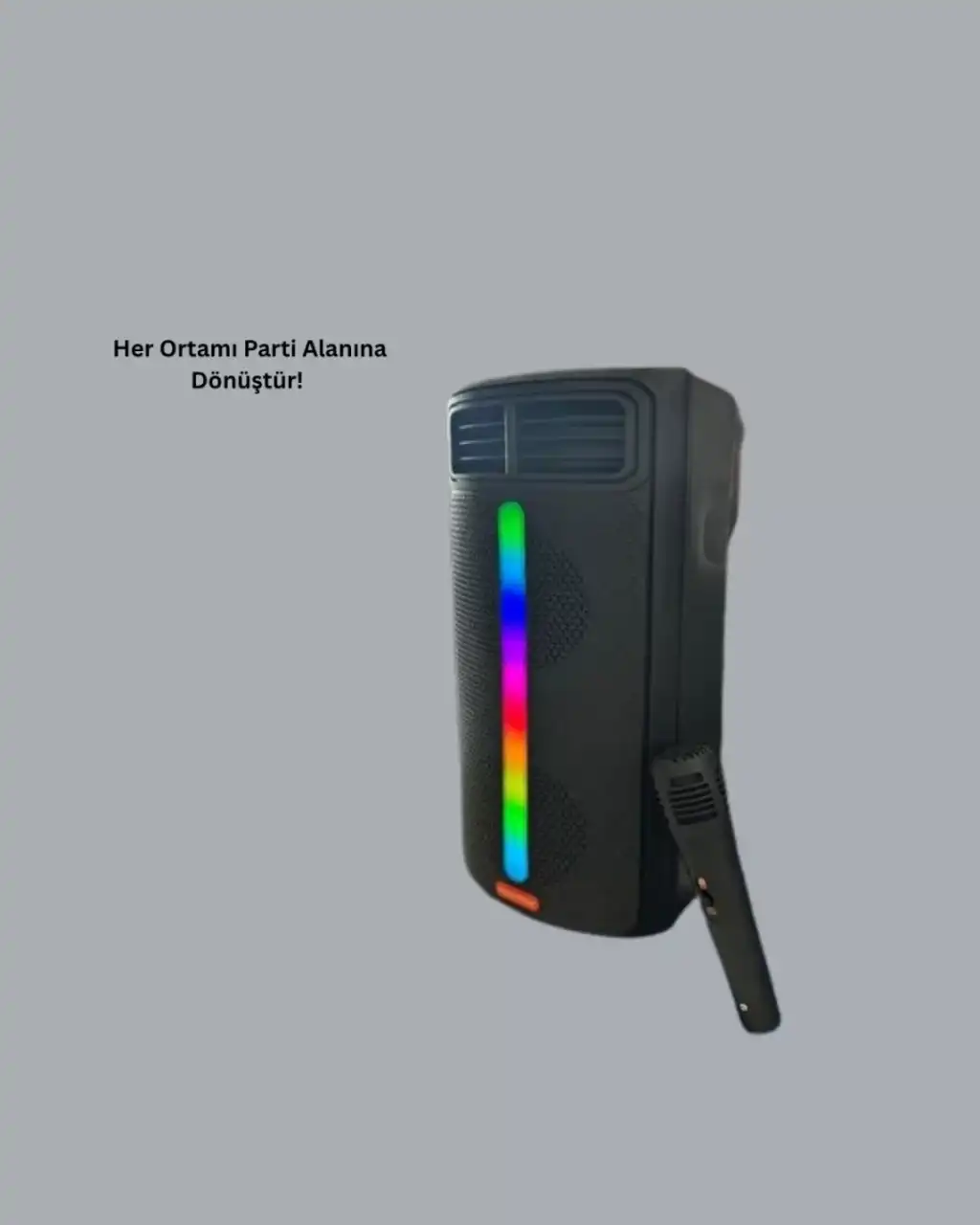 Siyah gövdesi ve parlak yüzeyiyle hem modern hem şık bir görünüme sahiptir. Üzerindeki kolay kontrol tuşları sayesinde sesi, modu ve ışıkları rahatlıkla ayarlayabilirsiniz. Her yaştan kullanıcı için pratik bir tasarıma sahiptir. Evde, ofiste veya dış mekânda kullanabileceğiniz bu hoparlör, güçlü ses kalitesi ve göz alıcı ışıklarıyla her ortama enerji katar.