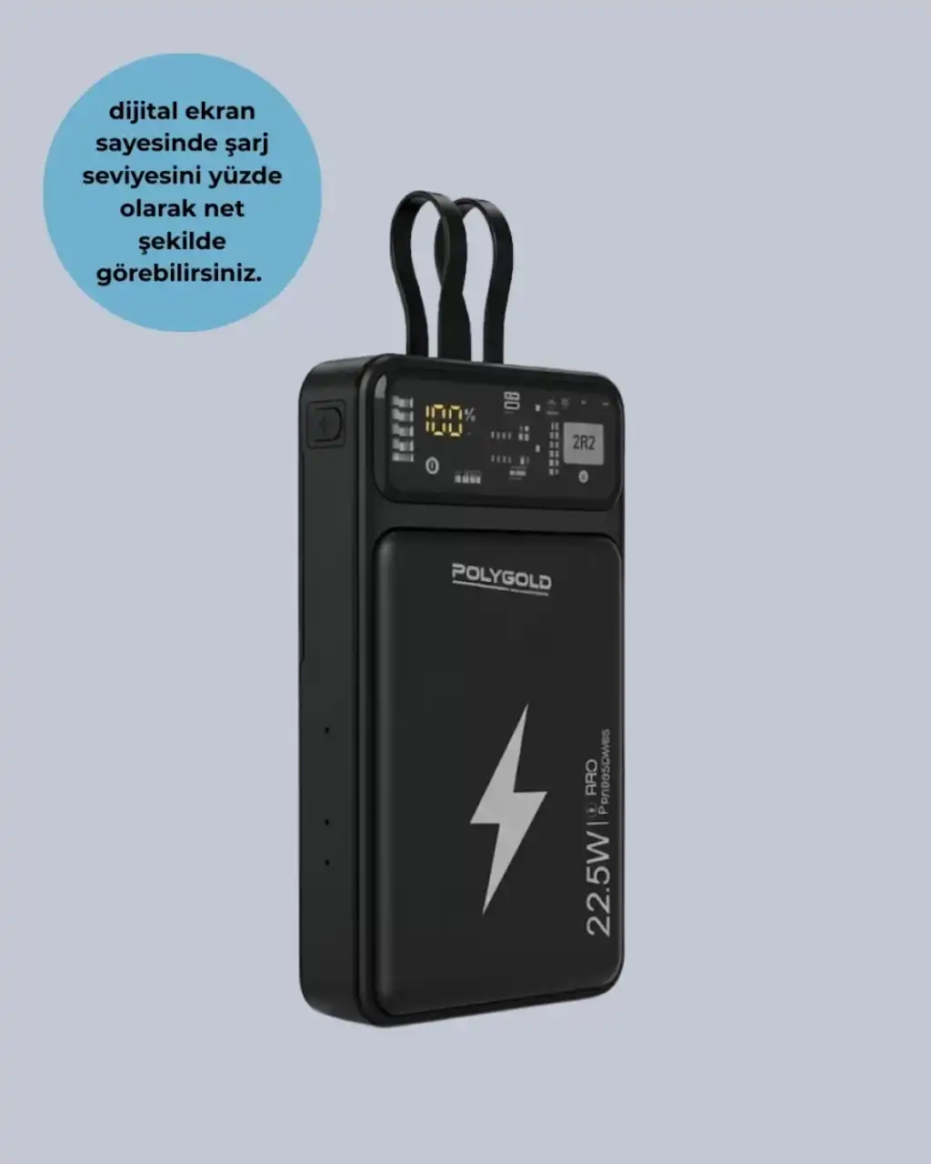 Polygold PG PW210, seyahatlerde, uzun yolculuklarda ve iş gezilerinde kullanıcıların en büyük yardımcısı olacak şekilde tasarlanmıştır. 10000 mAh kapasitesi ve hızlı şarj desteği sayesinde hem güçlü hem de güvenilir bir enerji kaynağıdır. Uçakta, otobüste, dış mekanda veya doğada rahatlıkla kullanılabilir. Kompakt tasarımı sayesinde az yer kaplar ve kolay taşınır.Dijital ekranı, dahili kabloları ve modern tasarımıyla tam bir kullanıcı dostudur. Akıllı telefon, tablet ve diğer elektronik cihazları güvenle şarj eder. Güvenlik devreleri, hem powerbank’i hem de bağlı cihazları korur.