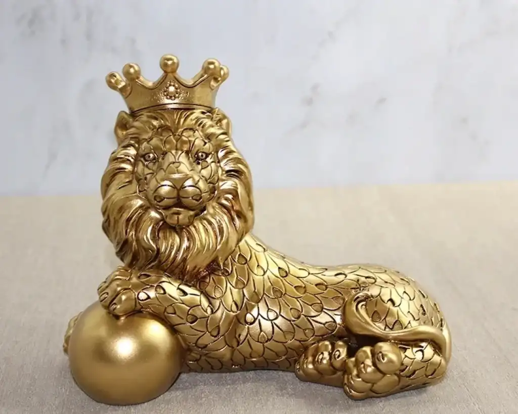 Polyester Dekoratif Taçlı Aslan Figürü