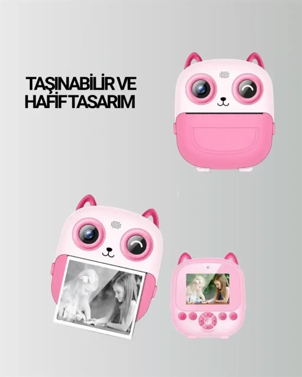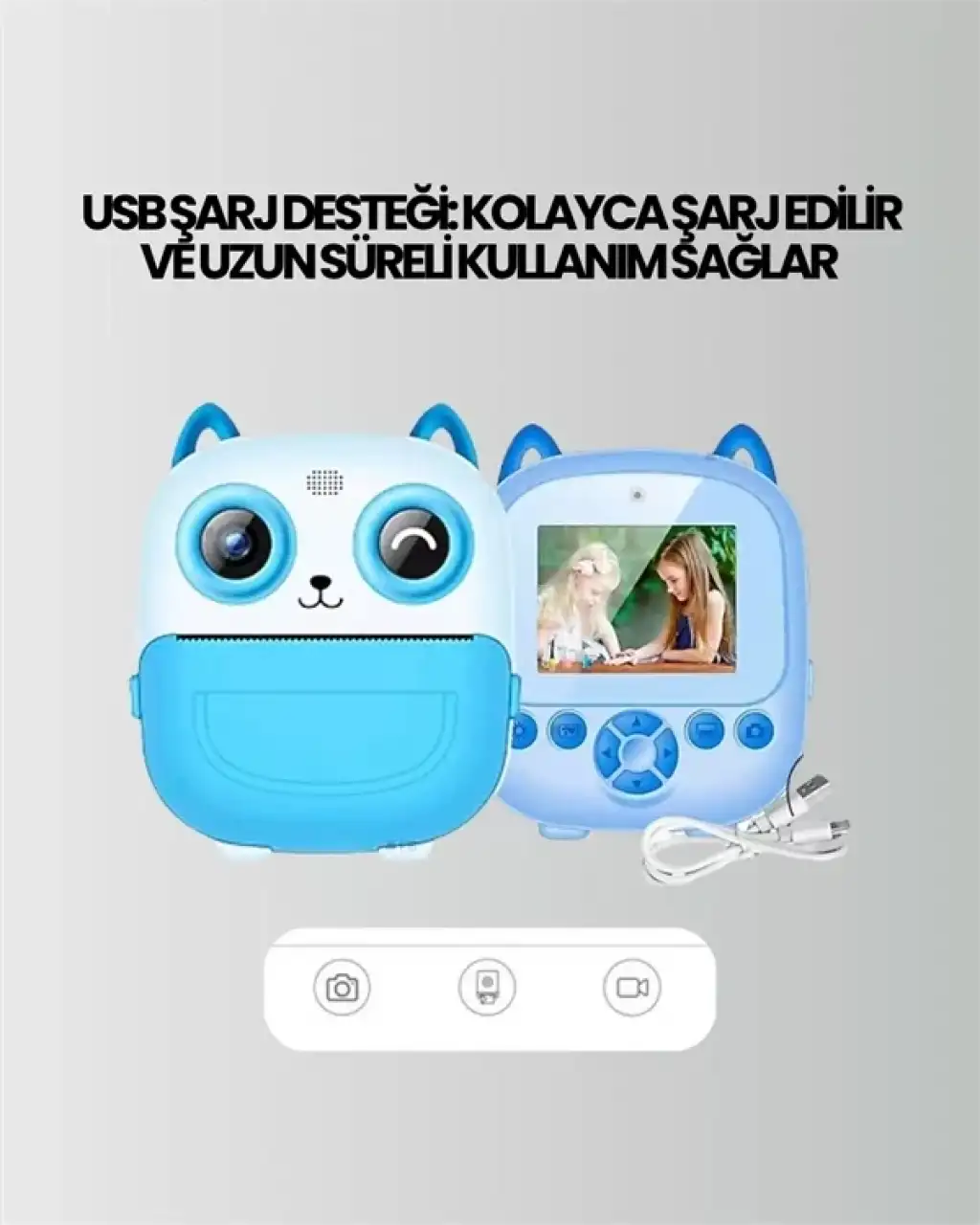 Anılar yalnızca kaydedilmek için değil, paylaşılmak ve saklanmak içindir. Dijital Termal Yazıcılı Mini Kamera, bu anlayışla geliştirilmiş, kullanıcıya hem dijital kayıt hem de fiziksel baskı imkânı sunan benzersiz ve çok yönlü bir üründür. Hem çocuklar hem de yetişkinler için pratik, yaratıcı ve eğlenceli bir kullanım sunar.Bu kompakt cihaz, klasik fotoğraf makinelerinden çok daha fazlasını sunar. İçinde yüksek çözünürlüklü bir dijital kamera, HD video kaydı yapabilen sistem, 2.4 inç renkli ekran ve 2000dpi termal yazıcı bir araya getirilmiştir. Tüm bunlar, sadece avucunuza sığacak kadar küçük, hafif ve taşınabilir bir cihazda toplanmıştır.HD Video ve Net Fotoğraf Kalitesiyle Göz Açıp Kapatana Kadar Anı YakalayınMini kamera, 1080p HD video kayıt özelliği ile dikkat çeker. Bu özellik sayesinde, ister doğa yürüyüşlerinde ister aile tatilinde olun, her anınızı net ve canlı bir şekilde kaydedebilirsiniz. Fotoğraf çekimlerinde ise sunduğu netlik, ışık dengesi ve çözünürlük sayesinde günlük kullanımda fazlasıyla yeterlidir.2.4 inçlik renkli ekran, çekim yaparken görüntüyü canlı olarak izlemene olanak tanır. Kadrajlama, pozlama kontrolü veya çekilen görüntüleri anlık olarak gözden geçirmek için idealdir. Basit menü yapısı, teknolojiden çok anlamayan kullanıcıların bile rahatça çekim yapmasını sağlar.️ 2000dpi Mürekkepsiz Termal Yazıcı ile Saniyeler İçinde Çıktı AlCihazın en dikkat çekici özelliği ise entegre termal yazıcı sistemidir. Bu yazıcı, klasik yazıcılardan farklı olarak mürekkep kullanmadan çalışır. Yüksek çözünürlüklü termal baskı teknolojisi sayesinde siyah-beyaz fotoğrafları birkaç saniyede elinde tutabileceğin kâğıtlara basar. Bu hem ekonomik hem de çevre dostudur. Yazıcı bakım gerektirmez, kartuş veya toner masrafı yoktur.Bu özellik özellikle çocuklar için büyük bir eğlence kaynağıdır. Fotoğraf çekerken yaratıcılıklarını kullanabilir, ardından o kareyi anında ellerinde görebilirler. Yetişkinler içinse bu özellik, yaratıcı dijital projelerde, günlük fotoğraf arşivlemede ya da özel anları fiziksel olarak biriktirmede çok kullanışlıdır. Çocuklar İçin Güvenli, Aileler İçin Öğretici ve EğlenceliKamera tasarımı sade, kullanımı kolay ve çocuk dostudur. Karmaşık tuşlar ya da karışık menüler yerine sezgisel ve sade bir sistem kullanılmıştır. Ebeveynler içinse bu ürün, çocuklarının dijital dünyayla sağlıklı bir şekilde tanışmasına olanak sağlar. Fotoğrafçılığa ilgi duyan çocuklar için harika bir başlangıç cihazıdır.Üstelik yalnızca eğlenceli değil, eğiticidir. Çocuklar bu kamera sayesinde: Kadrajlamayı, Perspektifi, Işıkla çalışmayı, Görsel hafızalarını kullanmayı, Ve üretmenin keyfini öğrenebilirler.USB ile Şarj Edilebilir – Günlük Kullanıma Uygun Uzun Süreli PerformansKamera, USB şarj desteğiyle kolayca şarj edilebilir. Bu da kablo kalabalığı, pil arama derdi ya da özel adaptör ihtiyacını ortadan kaldırır. Kompakt yapısına rağmen uzun süreli bir kullanım sunar. Bir kere şarj ettikten sonra gün boyunca fotoğraf çekimi, video kaydı ve baskı işlemleri rahatlıkla yapılabilir.Nerede, Nasıl Kullanılır?Bu kamera sadece bir oyuncak ya da dijital araç değildir, aynı zamanda her ortamda kendine yer bulabilecek çok yönlü bir üründür:Günlük yaşamda: Fotoğraf günlükleri tutmak, anı biriktirmek, yaratıcı albümler oluşturmakÇocuk etkinliklerinde: Doğum günleri, okul projeleri, tatillerSeyahatlerde: Anlık kareleri hem kaydedip hem yazdırma avantajıEğitimde: Görsel anlatım, sunum, el işi çalışmalarıVlog çekimlerinde: Kompakt ve pratik çekim aracıKutu İçeriği Dijital Termal Mini Kamera USB Şarj Kablosu Kullanım Kılavuzu