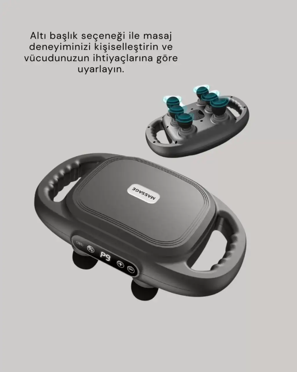 Şarjlı masaj tabancası, 6 farklı başlıkla birlikte gelerek vücudun her noktasına uygun bir masaj çözümü sunar. 15W motor gücü ve güçlü titreşim performansı sayesinde kas dokularına etkili bir baskı uygular. 2000 mAh pil gücü ise uzun süre kesintisiz kullanım sağlayarak cihazı günlük masaj rutininin ayrılmaz bir parçası haline getirir.Başlık çeşitliliği sayesinde vücuttaki her bölge için özel bir masaj imkânı oluşturulur. Geniş yüzeyli başlıklar büyük kas grupları için idealken daha küçük başlıklar hassas bölgelerde yüksek etki sağlar. Bu çeşitlilik, kişiye özel masaj deneyimi sunar ve kasların daha hızlı gevşemesine yardımcı olur.Kolay kavranabilen ergonomik tasarımı ile kullanıcı dostu bir yapıya sahiptir. Hafif gövdesi ile uzun süre kullanıldığında dahi elde yorgunluk hissi oluşturmaz. Bu özellik, cihazı evde kullanmak isteyen herkes için avantajlı hale getirir.Termal sensör sistemi cihazın ısısını kontrol eder ve güvenliği artırır. Kızılötesi ışın desteği ile masaj sürecinde hafif bir sıcaklık hissi vererek rahatlamayı yükseltir. Kullanım sırasında elde rahatsızlık oluşturan bir sıcaklık meydana gelmez.Cihazın çalışma süresi 10 dakikalık seanslar üzerine kuruludur. Bu süre sonunda otomatik durur ve kas yapısının korunmasına yardımcı olur. Ürün kargoya düşük şarjlı çıkabilir; bu nedenle ilk kullanım öncesinde 8 saatlik şarj önerilir.Şık ve modern görüntüsüyle banyoda, yatak odasında veya dolap içlerinde rahatça saklanabilir. Tasarımı, hem görünüm hem fonksiyon açısından gelişmiş bir kullanım deneyimi sunar.Bu masaj tabancası, hem dinlenme anlarınızı keyifli hale getirir hem de vücudun ihtiyaç duyduğu rahatlamayı sağlar. Spor sonrası kas gevşetme, gün içinde biriken gerginlik, masa başında oluşan ağrılar gibi birçok durumda etkili bir destek sunar.