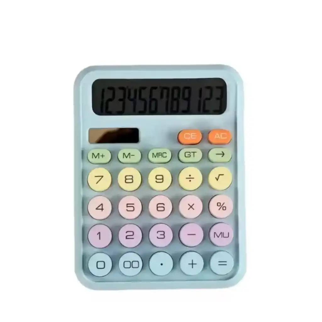 RENKLİ HESAP MAKİNESİÜrün ÖzellikleriRenkli Hesap Makinesi, hem şık hem de fonksiyonel bir araç olarak tasarlanmıştır. Soft pastel tonlarındaki renkler ile çalışma masasında estetik bir dokunuş sağlar.Büyük ekranı sayesinde hesaplama işlemlerini kolay ve hızlı bir şekilde yapabilirsiniz. Renkli pastel tuşlar ve rahat tuş takımı sayesinde, göz yormaz ve kullanımı son derece basittir. CE, AC, M+, M-, % gibi temel hesaplama fonksiyonlarına sahiptir. Hem basit hem de karmaşık hesaplamalar için uygundur. Hafif ve kompakt yapısı, taşınabilir ve kullanımı kolaydır. Enerji verimli pil ile çalışır, uzun süreli kullanım sağlar. Renkli tasarımı, her yaştan kullanıcıya hitap eder ve pratik bir çözüm sunar.Paket İçeriği1 adet Renkli Hesap Makinesi