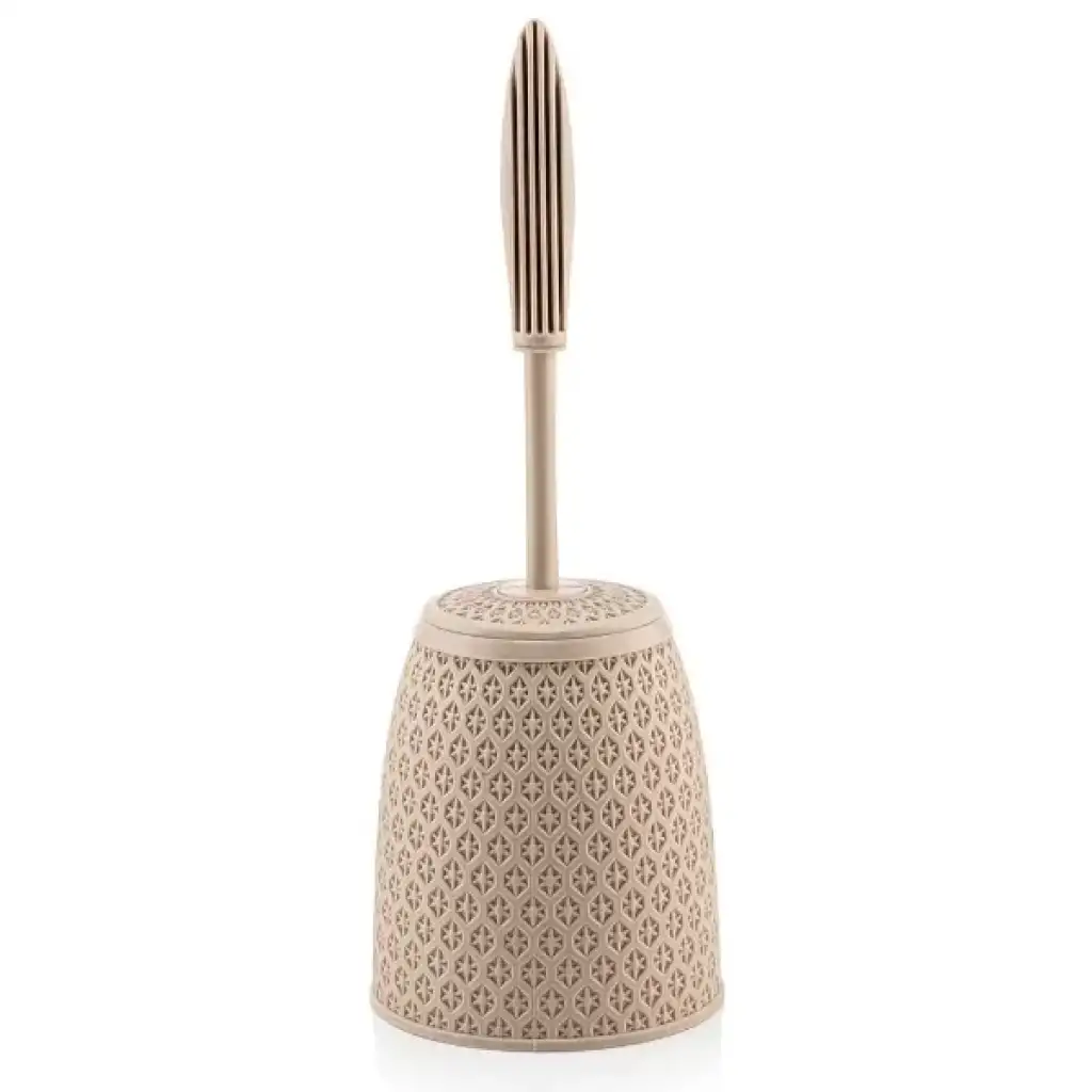 SAFİR DESENLİ TUVALET FIRÇASIÜrün ÖzellikleriSafir Desenli Tuvalet Fırçası, banyo dekorasyonunuza estetik bir dokunuş katarken hijyeni en şık haliyle sunar. Gövdesi üzerindeki zarif ve detaylı safir desen işlemeleri, sıradan banyo aksesuarlarından ayrılarak mekanınıza lüks bir görünüm kazandırır. Ürünün fırça sapı ile bütünleşik koruyucu kapak tasarımı, kullanım sonrasında fırçanın kova içinde tamamen kapalı kalmasını sağlayarak hem kötü kokuların yayılmasını önler hem de görsel bir bütünlük sergiler. Yüksek kaliteli, sağlığa uygun ve dayanıklı plastik materyalden üretilen bu modern tuvalet fırçası, neme ve suya karşı dirençli yapısıyla uzun ömürlü kullanım için idealdir. Ergonomik sap tasarımı konforlu bir temizlik imkanı sunarken, pürüzsüz iç ve dış yüzeyi sayesinde kova kısmı zahmetsizce temizlenebilir. Hem ev hem de profesyonel mekanların banyolarına uyum sağlayan bu dekoratif temizlik ürünü, kompakt formuyla alandan tasarruf ederken şıklığından ödün vermez.Ürün Teknik ÖzellikleriÖzellikAçıklamaÜrün AdıSafir Desenli Tuvalet FırçasıRenkBej / Vizon TonlarıMalzemeYüksek Kaliteli ve Dayanıklı PlastikTasarımSafir Desenli Dış Gövde ve Kapaklı Sap SistemiKullanım AlanıBanyo ve Tuvalet HijyeniFonksiyonKoku ve Görüntü Kirliliğini Önleyen Kapalı SistemTemizlikYıkanabilir ve Kolay Silinebilir YüzeyPaket İçeriği1 Adet Safir Desenli Tuvalet Fırçası