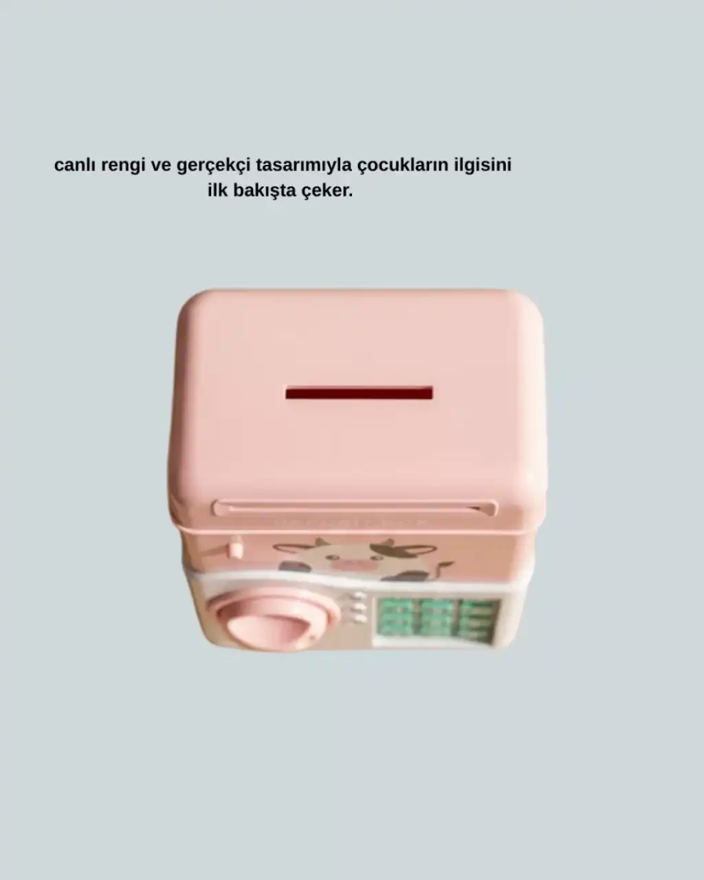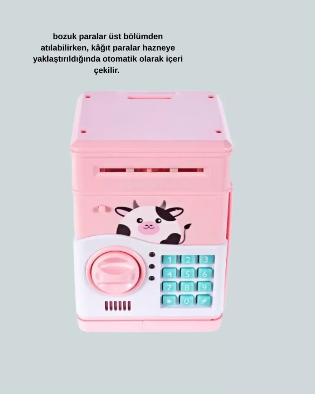 Bu pembe ATM kasa tasarımlı elektronik kumbara, hem eğitici hem de dekoratif bir üründür. Kişisel şifre sistemi ile güvenli kullanım sağlar.Otomatik para girişi, ışık ve ses efektleriyle birleşerek çocuklar için keyifli bir deneyim sunar. Doğum günü, bayram ve karne hediyesi olarak mükemmel bir seçenektir.