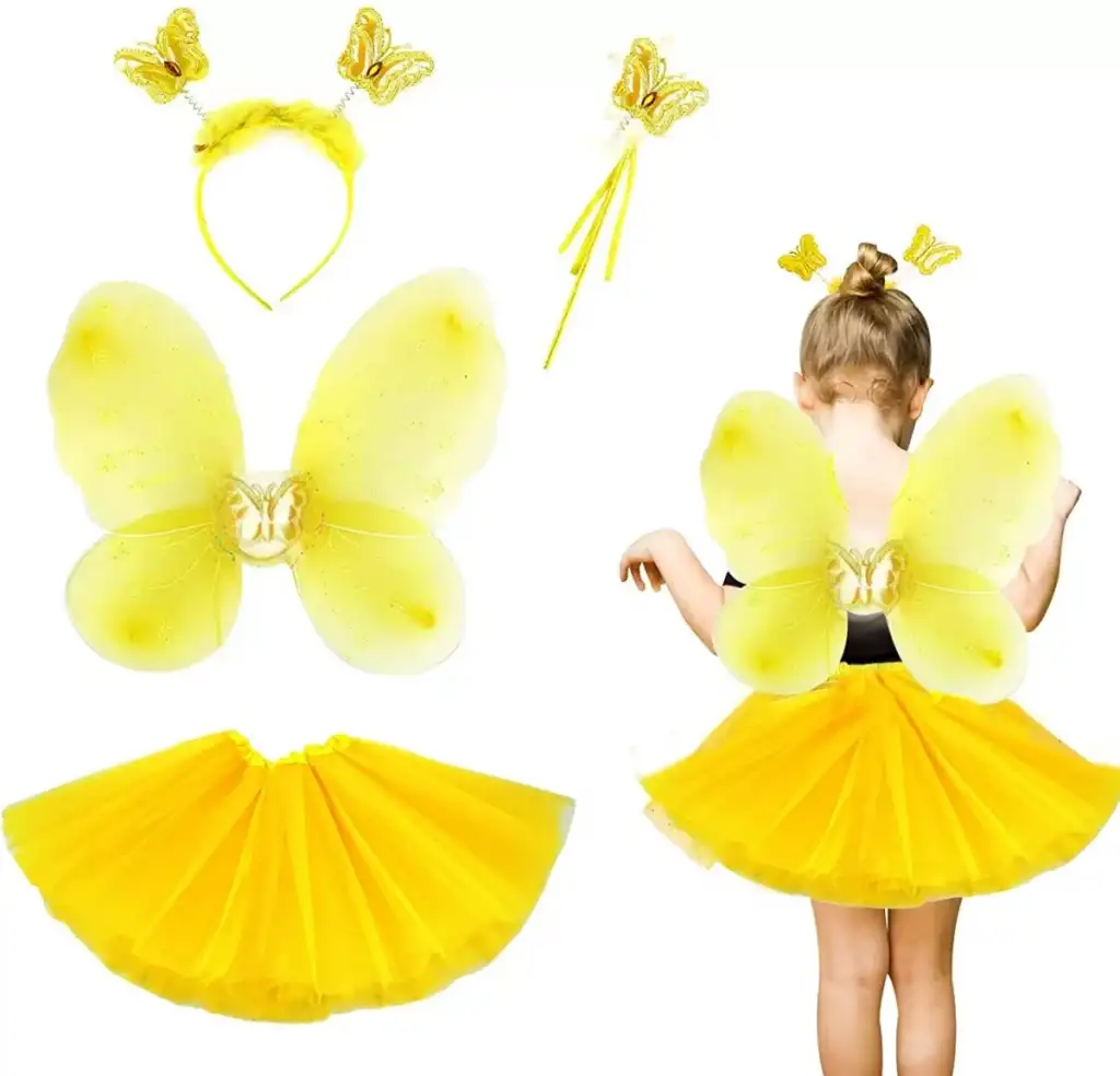 AsilTech Sarı Kelebek Kostümü Çocuk 4 Parça Set