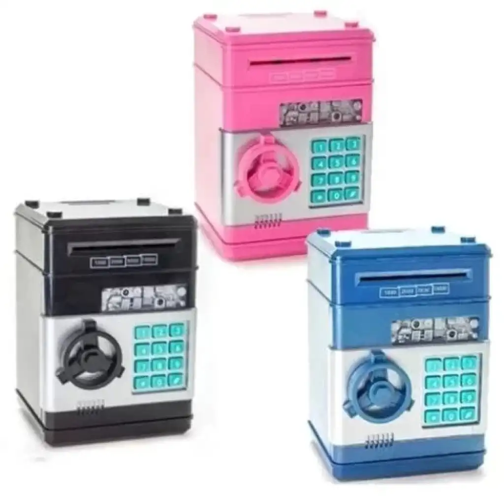 ŞİFRELİ ATM KUMBARAŞifreli ATM Kumbara banknot ve bozuk paralarınız için güvenli bir ortam oluştururken para biriktirmeyi eğlenceye dönüştürecek, tam size göre bir ürün.Şifreli ATM Kumbara, orjinal banka ATM tarzı para yükleme mekanizmasıyla kağıt paralarınızı kendi içine çeker, üst kısmından da madeni paraları atabilirsiniz.Dekoratif yapısıyla ev veya iş yerinizde kullanabileceğiniz bir üründür.Geniş haznesiyle paralarınızın yanı sıra, notlarınız, cüzdan, banka kartı, saat, kimlik kartı gibi kişisel eşyalarınızı da saklayabilirsiniz.Kasa kapısı açıldığında ışıklı ve sesli uyarı verir. Şifreli ATM Kasa Kumbaranın şifresi 0000 (dört adet sıfır) dır. Ürün Özellikleri4 haneli şifresi istendiğinde değiştirilebilir.Işıklı ve sesli uyarı işaretleri bulunur.Banknot ve bozuk para ile kullanılabilir.Kağıt parayı otomatik olarak içine çeker.Geniş hazneye sahiptir.ABS materyalden imal edilmiştir.3 adet AA kalem pille çalışır. (piller pakete dahil değildir)Stok durumuna göre renkler karışık gönderilecektir. Ürün ÖlçüleriEbat: 12.5 cm. * 13 cm. * 20 cm.Ağırlık: 590 gr. Paket İçeriği1 adet Şifreli Kasa Kumbara