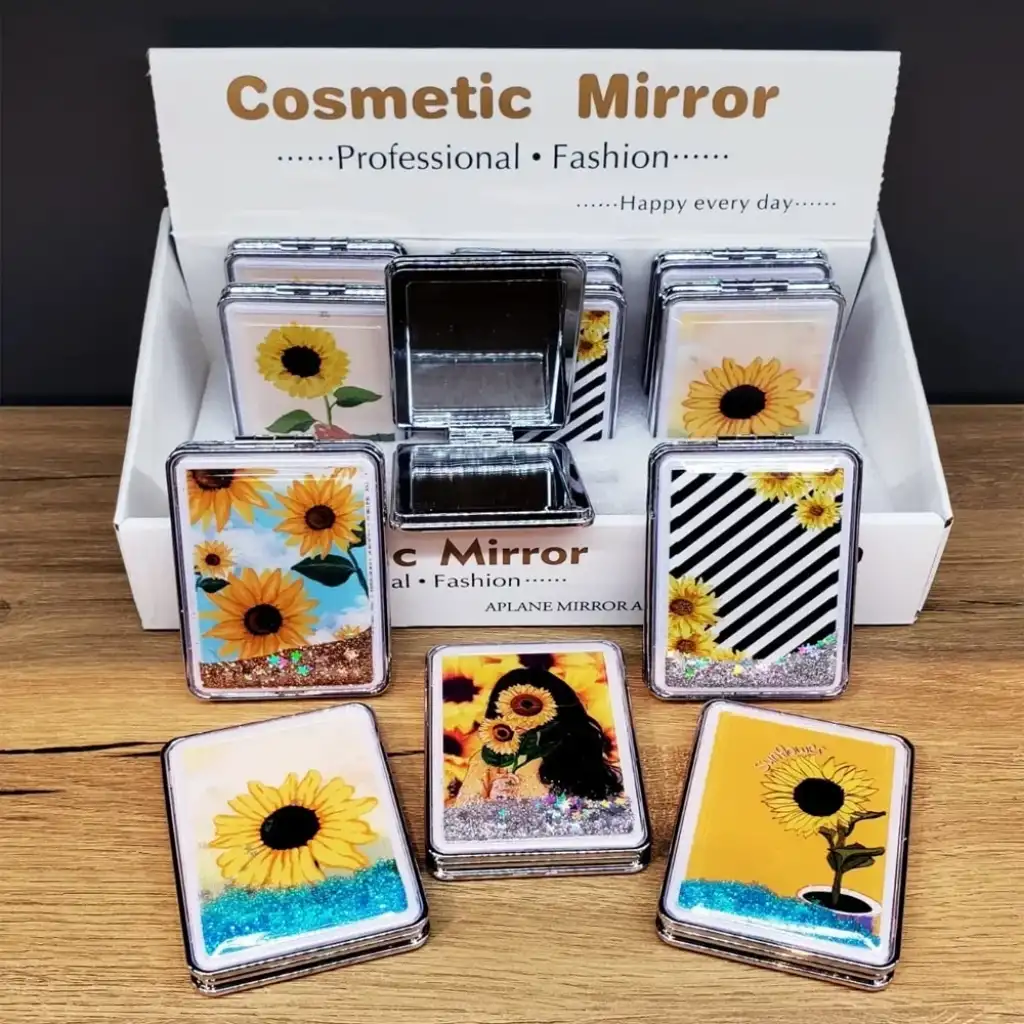 SİMLİ KAPAKLI CEP AYNASIÜrün ÖzellikleriSimli Kapaklı Cep Aynası, kaliteli cam malzemeden üretilmiştir. Aynanın kapağı plastik malzemeden yapılmış olup, içerisinde su ve simler yer almaktadır. Kapağındaki ayçiçeği tasarımlı baskılar ile şıklık katılmıştır. Bu pratik ve estetik ayna, özel günlerde kullanılabilecek harika bir hediye seçeneğidir. Aynaların tasarımları karışık olarak gönderilmektedir, bu da ürünün her seferinde farklı bir modelle gelmesini sağlar. Ürünün boyutları ise 8.5 cm x 6 cm'dir.Paket İçeriği1 Adet Simli Kapaklı Cep Aynası
