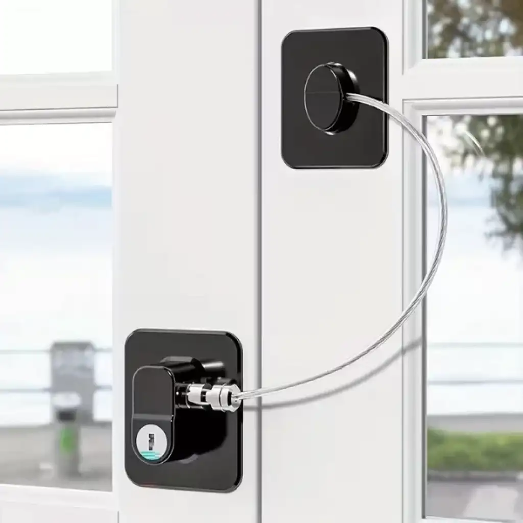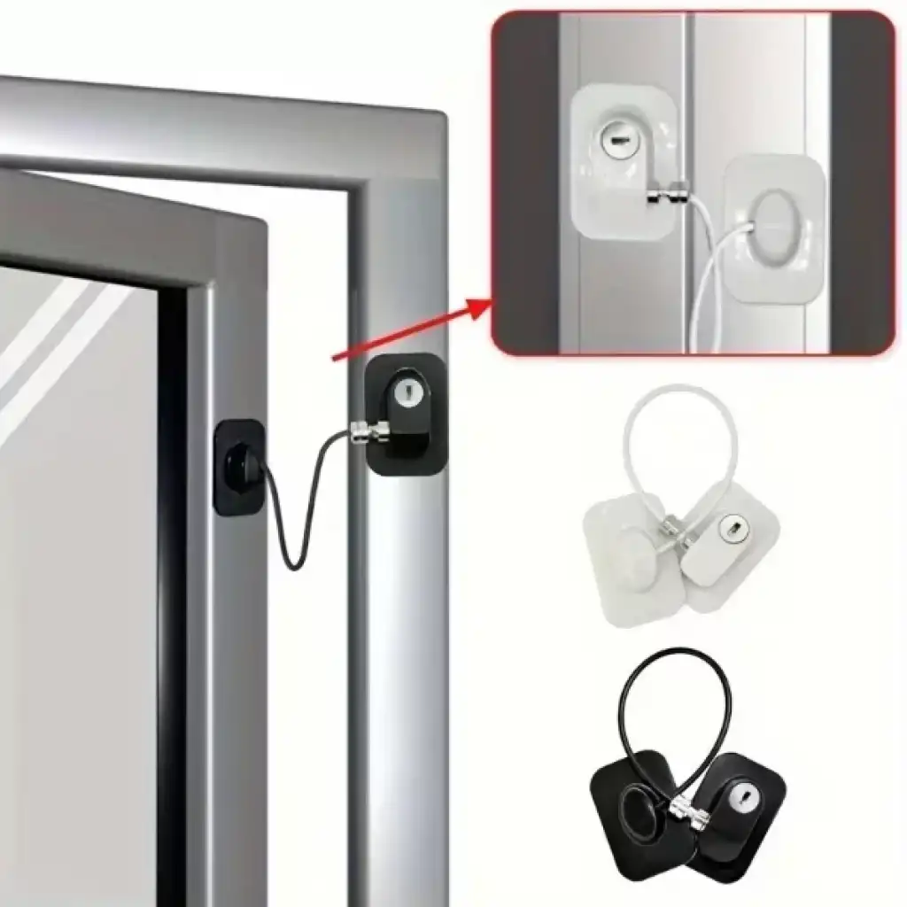 SİYAH PLAKA HALATLI EMNİYET KİLİDİÜrün ÖzellikleriSiyah plaka halatlı emniyet kilidi, pencere ve dolap gibi açılır kapanır yüzeylerde ekstra güvenlik sağlayan pratik bir koruma çözümüdür. Güçlü yapışkanlı montaj plakaları sayesinde matkap gerektirmeden kolayca uygulanabilir ve yüzeye sağlam bir şekilde sabitlenir. 18.8 cm uzunluğundaki dayanıklı çelik halatı, açılma mesafesini kontrol altında tutarak çocukların tehlikeli alanlara ulaşmasını engeller. Şık siyah tasarımıyla her ortamla uyum sağlayan ürün, anahtarlı kilit mekanizması sayesinde güvenliği artırır ve yetkisiz açılmayı önler. Ev, ofis ve iş yerlerinde pencere, dolap, kapak ve sürgülü yüzeylerde güvenle kullanılabilir.Paket İçeriği1 adet siyah plaka halatlı emniyet kilidi