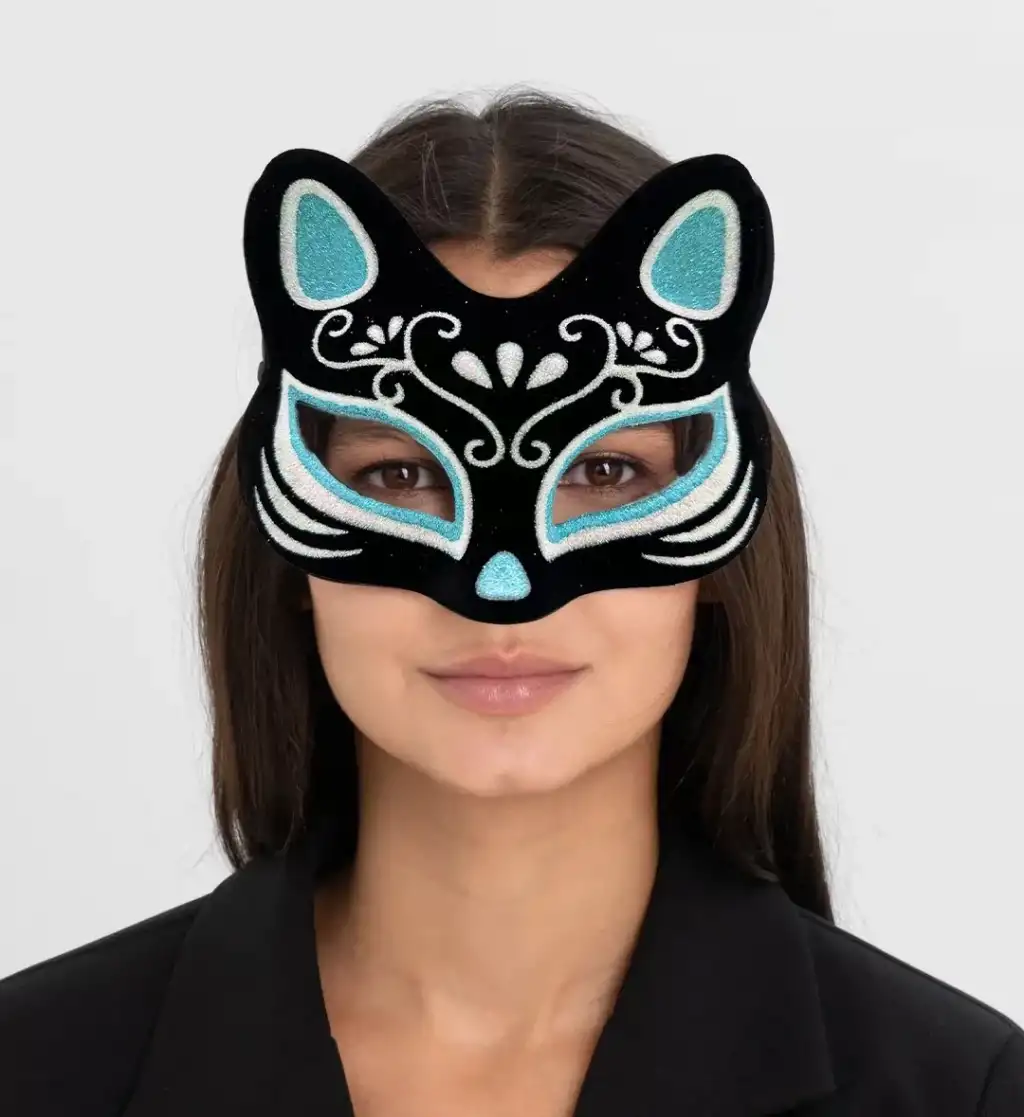 SİYAH SÜET GÜMÜŞ MAVİ SIMLI KEDİ MASKESİ Ürün ÖzellikleriMalzeme: Süet kumaş, simli detaylar ve metalik süslemeler.Renk: Siyah süet, gümüş ve mavi simli detaylarla modern bir tasarım.Boyut: 17 cm x 14 cm.Tasarım: Şık ve göz alıcı kedi maskesi, özellikle parti ve balo etkinliklerinde tercih edilir.Detaylar: Gümüş ve mavi simli efektler, maske tasarımına parlaklık katarken, süet yüzey zarif bir dokunuş sağlar.Kullanım Alanı: Masquerade baloları, kostüm partileri, Halloween kutlamaları ve temalı etkinlikler.Konfor: Yumuşak süet malzeme ve ayarlanabilir bant ile rahat kullanım.Paket İçeriği1 Adet Siyah Süet Gümüş Mavi Simli Kedi Maskesi