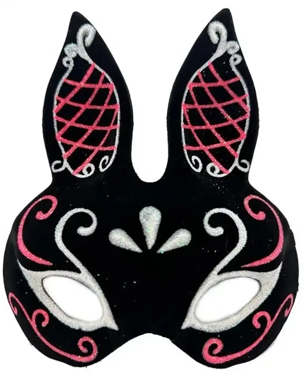 Siyah Süet Tavşan Maskesi Simli