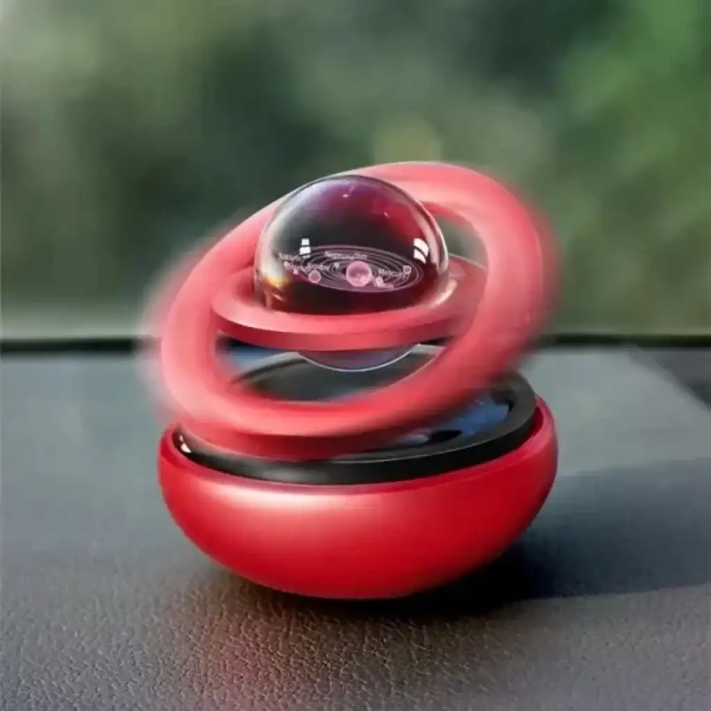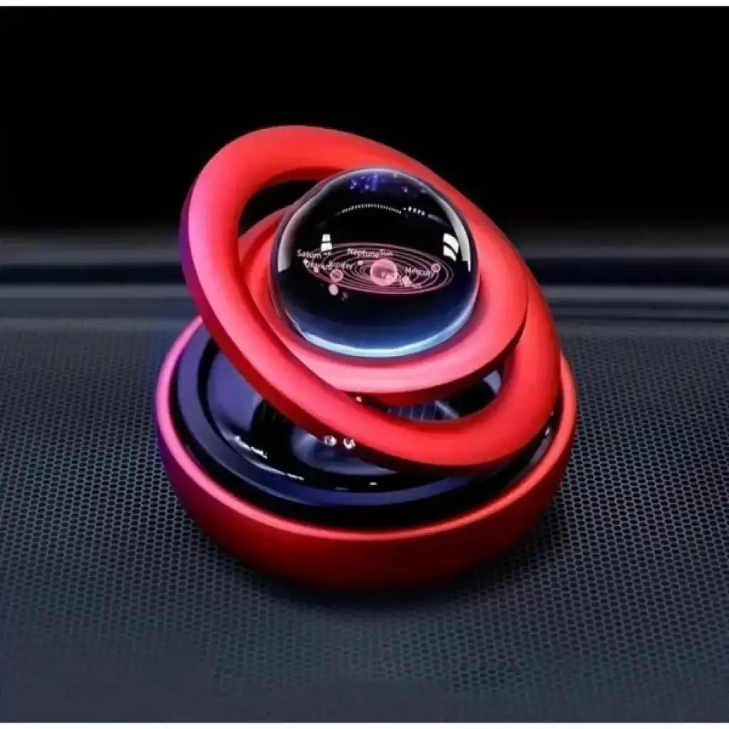 SOLAR 360° DÖNEN ARABA KOKUSUÜrün ÖzellikleriSolar 360° Dönen Araba Kokusu, hem görselliği hem de işlevselliğiyle dikkat çeker. Üst kısmında yer alan şeffaf kristal küre içerisinde 3D galaksi veya gezegen tasarımı yer alır. Ortam ışığıyla birlikte şık bir görünüm sunar. Küre etrafında dönebilen iki halka bulunur. Bu halkalar, dekoratif olarak tasarlanmış olup ürünün estetik değerini artırır. İç kısmına yerleştirilen aroma tableti veya sıvı esans sayesinde aracın içinde ferah bir koku yayılmasını sağlar. Güneş enerjisi sayesinde hareket ettiğinde kokunun daha hızlı dağılmasını sağlar. Hem evde masa üstünde dekoratif amaçla hem de araç içi parfüm olarak kullanılabilir. Kırmızı, siyah, altın, gümüş ve mavi gibi farklı metalik renklerde sunulur ve stok durumuna göre karışık gönderilir. Paket İçeriği1 Adet Solar 360° Dönen Araba Kokusu