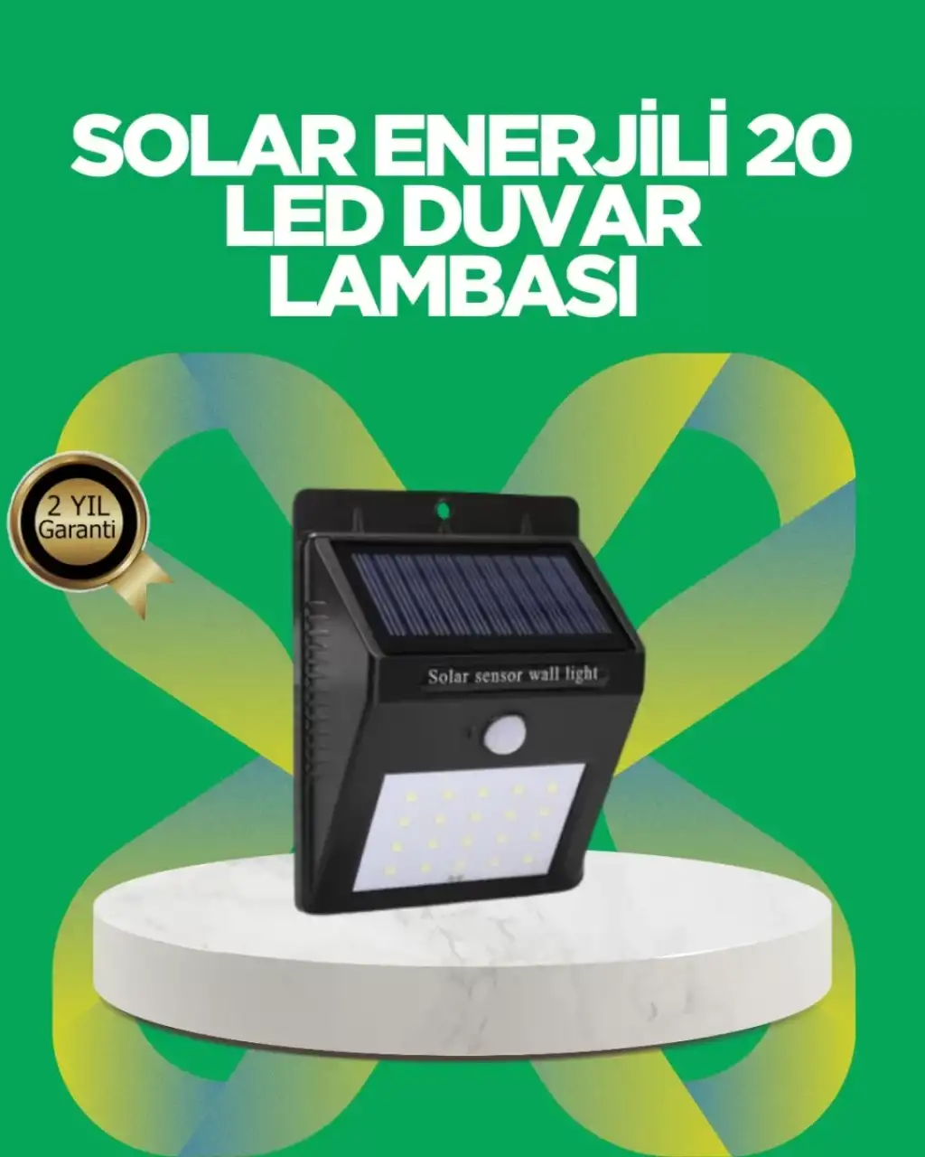 Hareket Sensörlü Solar Enerjili 20 LED Duvar Lambası, evinizin veya bahçenizin karanlık noktalarını güvenli ve şık bir şekilde aydınlatır. Güneş paneli sayesinde gün boyunca enerji depolar ve gece boyunca otomatik olarak çalışır. PIR hareket sensörü ile 3-4 metreye kadar algılama yapar, 120° geniş açıyla hareketleri tespit eder. Bu sayede hem enerji tasarrufu sağlar hem de güvenlik artırıcı bir çözüm sunar.IP65 su geçirmezlik özelliği ile yağmur, kar ve rüzgara dayanıklıdır. 1200 mAh bataryası sayesinde tam şarjda 8 saate kadar kesintisiz ışık verir. 4 farklı mod seçeneğiyle sadece güvenlik için değil, dekoratif aydınlatma için de kullanılabilir. Bahçe, balkon, garaj kapısı ve yürüyüş yolları için ideal bir çözümdür.
