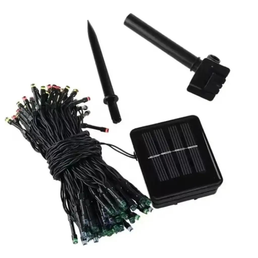 SOLAR SİYAH KABLO BAHÇE AYDINLATMASIÜrün ÖzellikleriSolar siyah kablo bahçe aydınlatması, dış mekânlarda dekoratif ve ekonomik bir aydınlatma çözümü sunar. Güneş paneli sayesinde gündüzleri 4-8 saat arasında şarj olur ve tam dolu şarjla 6-10 saat kesintisiz aydınlatma sağlar. Panelin arkasında yer alan açma-kapama düğmesi ile kullanım kolaylığı sunarken, "Mode" düğmesi sayesinde farklı ışık modları arasında geçiş yapılabilir. IP65 koruması ile su geçirmez ve gönül rahatlığıyla dış mekanlarda kullanılabilir. Bahçeler, teraslar, balkonlar ve yürüyüş yolları için ideal olan bu ürün, enerji tasarruflu yapısı ile uzun süreli kullanım imkânı sağlar. Siyah kablosu sayesinde dekoratif kullanımda sade ve şık bir görünüm sunar.Paket İçeriği1 adet Solar Siyah Kablo Bahçe Aydınlatması