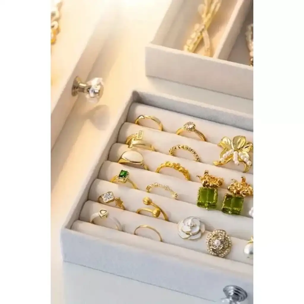 ÜÇ KATLI TAKI ORGANİZERİÜrün ÖzellikleriÜç Katlı Takı Organizeri, üç katlı çekmeceli tasarımı ile farklı türdeki takıların (yüzük, küpe, kolye, bileklik vb.) ayrı ayrı saklanmasına olanak tanır. Kadife kaplı iç bölmeler, takıların çizilmesini önler ve şık bir sunum sağlar. Saydam akrilik dış kapak, tozlanmayı engellerken içeriğin kolayca görünmesini sağlar. Kristal görünümlü çekmece kulpları ise dekoratif bir detay olarak tasarıma zarafet katar. Çok gözlü iç yapısı, küçük aksesuarların karışmadan düzenli bir şekilde durmasını sağlar. Bu düzenleyici kutular, hem evde takı organizasyonu sağlamak hem de makyaj masası veya komodin üzerinde dekoratif bir görünüm oluşturmak için idealdir.Paket İçeriği1 Adet Üç Katlı Takı Organizeri
