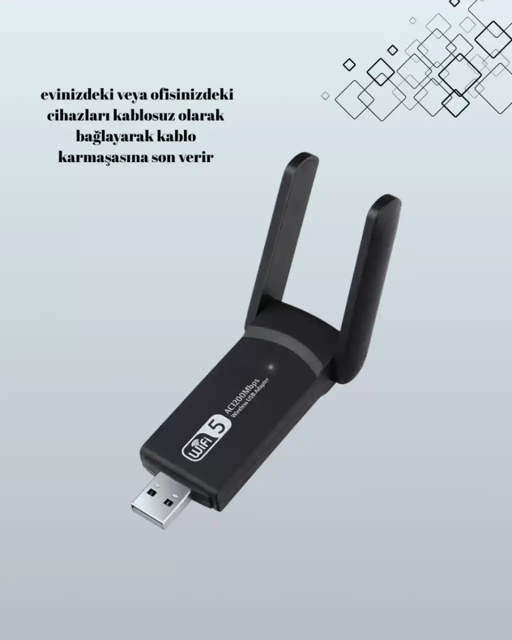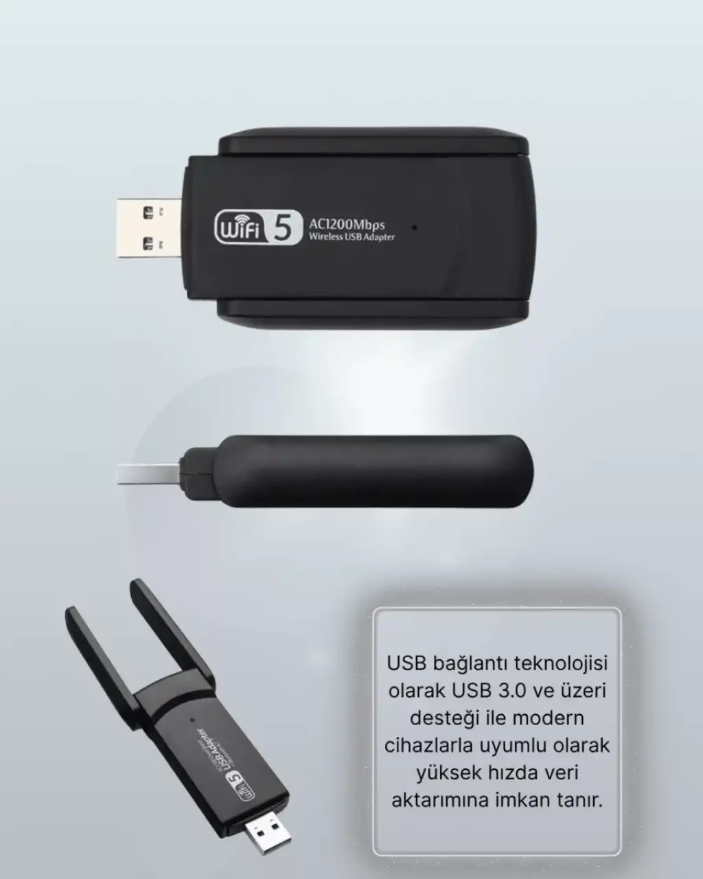AC1200 USB WiFi adaptör, 2.4GHz ve 5GHz bantlarında toplam 1200 Mbps’ye kadar veri aktarım hızı sunar. 2.4GHz bandında 300 Mbps, 5GHz bandında ise 867 Mbps hızlara ulaşarak yüksek çözünürlüklü video izleme, online oyun oynama ve dosya indirme işlemlerinde kesintisiz performans sağlar.Donanımında kullanılan Realtek RTL8812BU yonga seti, güvenilir ve stabil bir kablosuz ağ bağlantısı sunmak için optimize edilmiştir. USB 3.0 arayüzü, daha yüksek hızda veri iletimi için tasarlanmış olup, adaptörün tam performansla çalışabilmesi için USB 3.0 portuna bağlanması önerilir.Tak çalıştır özelliği sayesinde, Windows 10 ve üzeri işletim sistemlerinde ek yazılım gerektirmeden doğrudan kullanılabilir. Diğer işletim sistemlerinde ise kutu içeriğinde yer alan sürücü CD’si ile kolay kurulum yapılabilir.