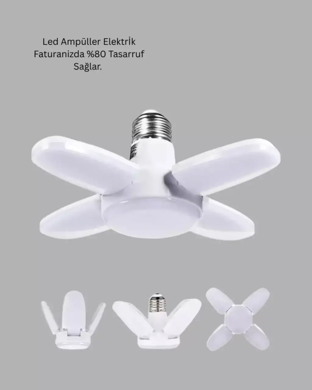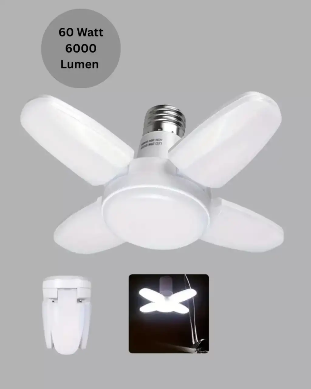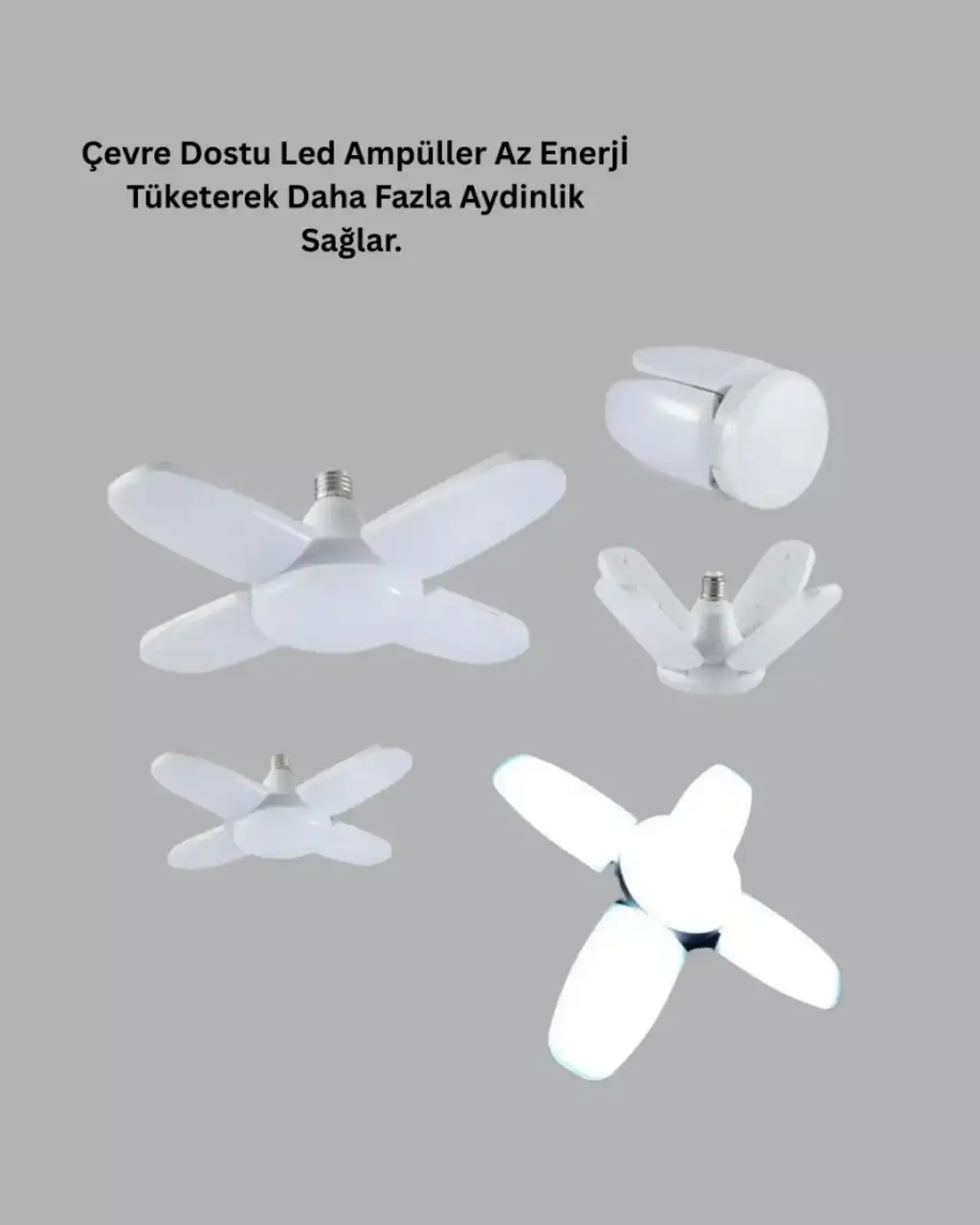 Katlanabilir 4 kollu pervane LED ampül, modern aydınlatma ihtiyaçlarına güçlü bir yanıt verir. 6000 lumen ışık gücü ile geniş alanları homojen şekilde aydınlatır. 60 Watt gücü, yüksek performansı düşük enerji tüketimiyle birleştirir.LED teknolojisi sayesinde uzun ömürlü ve çevre dostudur. Katlanabilir kol tasarımı ile ışık dağılımı optimize edilir. Standart duy uyumu ile pratik kurulum sağlar.Ev ve iş yerlerinde güçlü, ekonomik ve verimli bir aydınlatma çözümü arayanlar için ideal bir üründür.