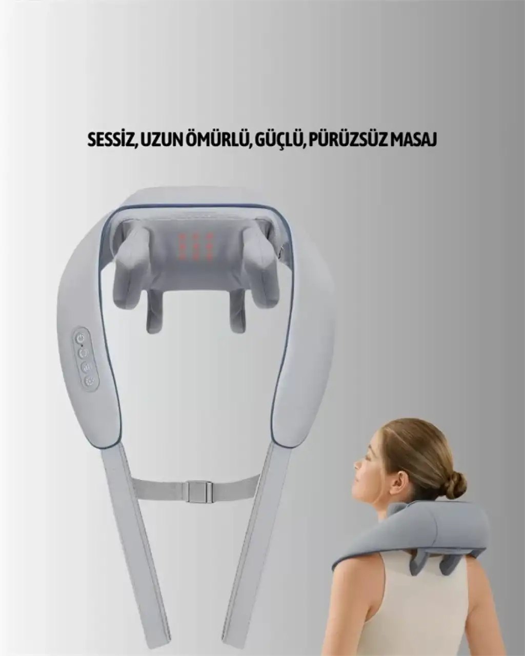 VNB-01, modern yaşamın getirdiği kas gerginliği, boyun ağrısı ve stresle mücadele için geliştirilmiş, titreşimli, ısıtmalı ve gerçek yoğurma hissi sunan gelişmiş bir boyun masaj cihazıdır. Sessiz çalışan fırçasız motoru, gelişmiş biyonik masaj teknolojisi ve ergonomik U-tasarımı ile boyun, omuz, sırt, bel ve bacak gibi birçok bölgeye uygulanabilir.✅ Temel Özellikler: Gerçek Derin Doku Masajı: Parmak ucu simülasyonuna dayalı biyonik yoğurma teknolojisi, insan eliyle yapılan profesyonel masaj manevralarını taklit eder. Titreşimli Masaj + Isı Terapisi: Titreşim özelliği kasları uyarırken, etkili ısıtma sistemi kan dolaşımını destekleyerek rahatlamayı derinleştirir. Sessiz ve Güçlü Fırçasız Motor: Uzun ömürlü motor sessiz çalışır, böylece cihazı evde, ofiste veya seyahatte konforla kullanabilirsiniz. 3 Kademeli Hız Ayarı: Yumuşak rahatlama veya derin kas gevşetme için ayarlanabilir hız ve yoğunluk seçenekleri. 2 Masaj Modu: Gündelik stres için hafif, kas gerginliği için yoğun yoğurma modu. Geniş Uygulama Alanı: Boyun, omuz, bel, sırt ve bacaklar dahil olmak üzere birçok vücut bölgesine uygulanabilir. Kayışlı Ergonomik Tasarım: Arkadan kilitlenebilir askı sayesinde eller serbest kullanım imkanı sunar. Farklı vücut tiplerine kolayca uyum sağlar.⚙️ Teknik Özellikler: Güç Girişi: 5V Güç Tüketimi: 10W Pil Kapasitesi: 1800mAh (bazı bilgilerde 2000mAh olarak da geçmektedir) Cihaz Ağırlığı: 1.12 kg – 1.29 kg arası Malzeme: A sınıfı ABS gövde, dayanıklı ve ısıya karşı dirençli Renk: Gri Kullanım Şekli: Şarjlı, kablosuz kullanımKullanım Kolaylığı: Basit Kontrol Paneli: Cihazın yan tarafında yer alan tuşlarla modlar ve hız kolayca değiştirilebilir. Açma Tuşu: Güç düğmesine basarak cihazı çalıştırabilir, titreşimi aktif edebilir ya da kapatabilirsiniz. Çoklu Ortam Uyumu: Kutudan çıkan adaptörle evde prizle ya da araçta çakmak girişiyle kullanılabilir.Kimler İçin Uygun? Masa başında uzun saatler geçiren çalışanlar Boyun ve sırt ağrısından şikayetçi olanlar Spor sonrası kaslarını rahatlatmak isteyenler Uzun yolculuklarda boyun tutulması yaşayan sürücüler Günlük hayatın stresinden arınmak isteyen herkesTORİMA VNB-01, günlük yaşamınızda konforu artırmak, kaslarınızı gevşetmek ve rahatlamak için ihtiyacınız olan güçlü ve taşınabilir bir çözümdür. Masajın insan eli gibi etkisini yaşarken, sessiz ve pratik kullanımı sayesinde istediğiniz her yerde kendinize zaman ayırabilirsiniz.