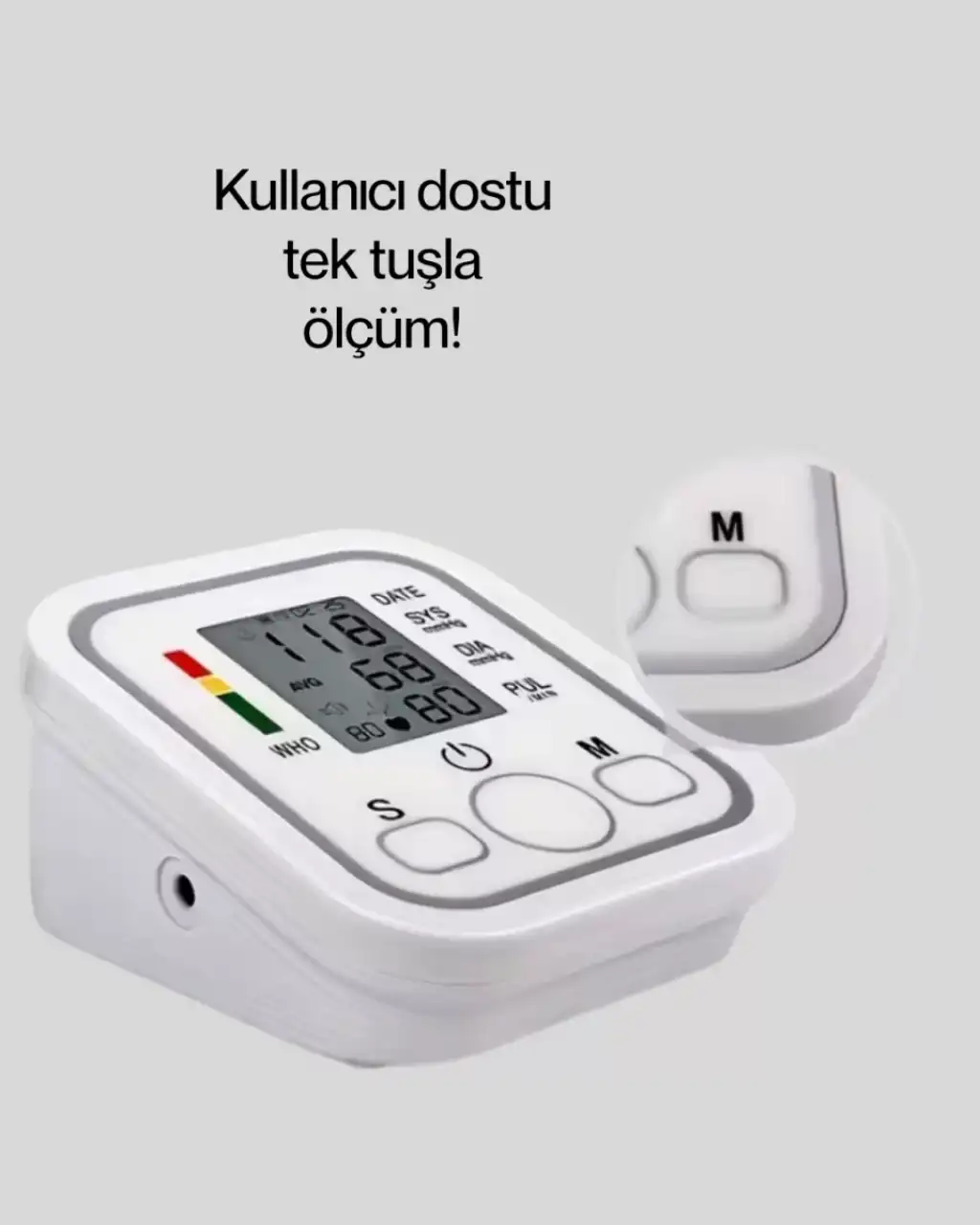 Yüksek hassasiyetli elektronik tansiyon ölçer, profesyonel ölçüm sonuçlarını evinize taşıyan modern bir cihazdır. ±3mmHg hata payı ile son derece güvenilir ölçümler sunar. IHB aritmi tespiti sayesinde kalp ritminizdeki düzensizlikleri algılayarak olası riskler hakkında sizi önceden uyarır.LCD dijital ekran, ölçüm sonuçlarını büyük ve okunaklı bir şekilde gösterir. WHO kan basıncı sınıflandırma sistemi, sonuçlarınızı renkli göstergelerle değerlendirerek ölçümlerinizi daha kolay anlamanızı sağlar. Nabız tarama ve osilometri yöntemleri ile ölçüm yapabilen cihaz, doğruluğunu iki kat artırır.2 kullanıcı için ayrı ayrı 99 ölçüm hafızasına sahiptir. Bu sayede aile bireyleri ölçüm verilerini düzenli olarak takip edebilir. Kompakt tasarımı ve 300 gramlık hafifliği ile taşınabilir bir yapıya sahiptir. 4 adet AAA pil veya USB kablo ile kullanılabilmesi, enerji ihtiyacını karşılamada esneklik sağlar. Paket içeriğinde tansiyon ölçüm bandajı, kullanım kılavuzu ve monitör bulunmaktadır. Düzenli tansiyon takibi yapmak isteyen herkes için ideal bir üründür.