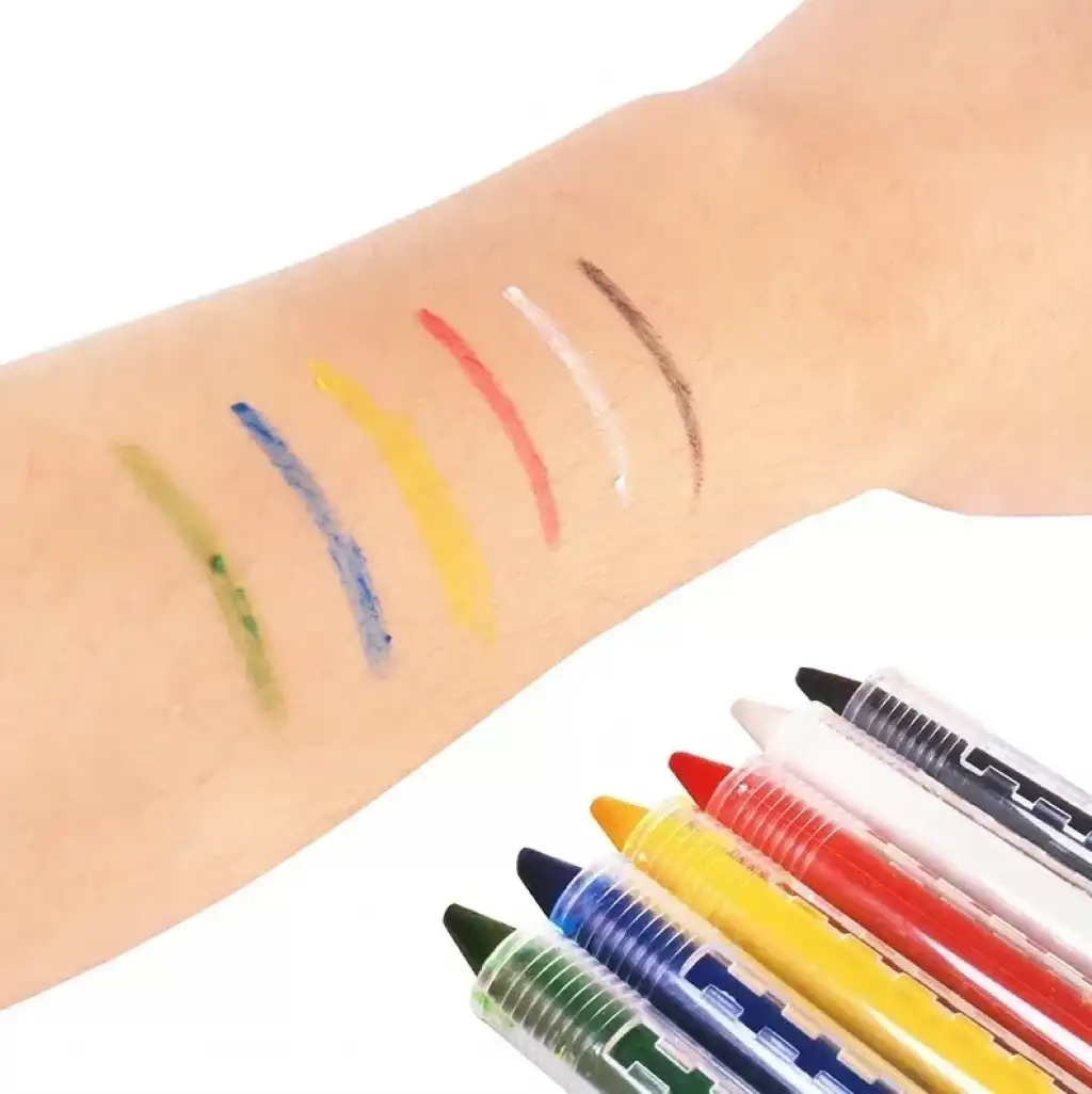 Yüz Boyama Seti Kalemli 6 Renk Bu 6 renkli yüz boyama seti kalemleri ile partilerde, karnavallarda ve özel kutlamalarda kolay ve eğlenceli bir şekilde yüz boyama keyfini yaşayın.Ürün Özellikleri6 renk mevcuttur (yeşil, sarı, kırmızı, mavi, siyah, beyaz)Kullanımı kolay ve pratikCilde zarar vermez Su ve sabun ile kolayca temizlenebilir.Paket İçeriği1 Adet 6'lı Kalem Seti
