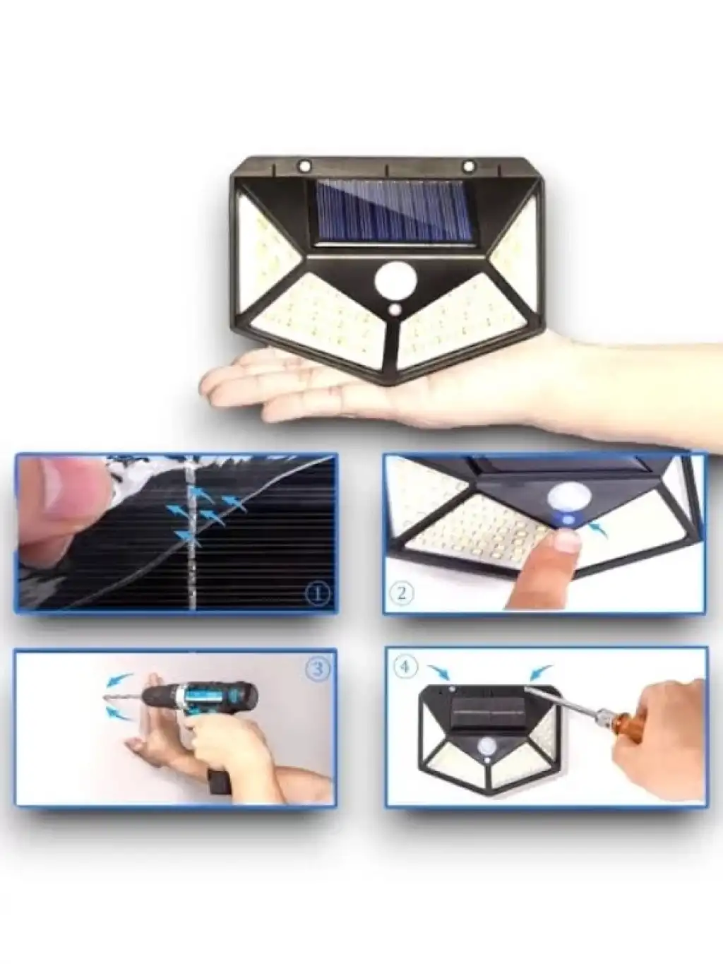 Bahçe balkon teras gibi dış mekanlarınız aydınlık ve dekoratif olması için güneş enerjili solar bahçe aydınlatma – solar lamba. Solar güneş enerjili bahçe aydınlatmanız sabahleyin güneş enerjisi ile kendini şarj eder , gece olunca sensörü sayesinde otomatik yanar. Balkonda , bahçede , pencerede , terasta kabloya gereksinim duymadan kolayca kullanabilirsiniz. Ürün özellikleri Kurulumu kolaydır kablo gerektirmez. Doğrudan güneş alan bir yere yerleştiriniz. Gücü açmak & mod değiştirmek ıçin on/off tuşu vardır. Led sayısı 100 dir. Pır sensörü ve 3 farklı modu ile harekete ve ışığa karşı duyarlıdır. Hareket sensörü hareket algılamadığı zaman 10 saniye içinde otomatik kapanır. Ürün ölçüler 14 cm * 6 cm Paket içeriği Bir adet hareket sensörlü güneş enerjili led aydınlatma dış mekan bahçe 100 led li