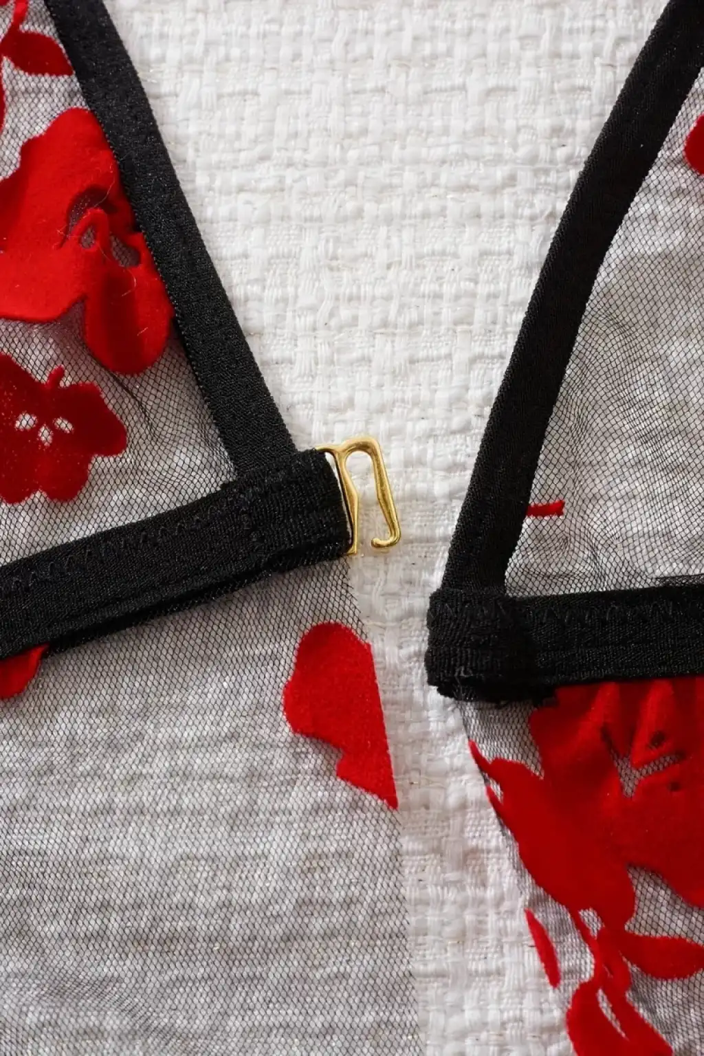 Giyim Tül Önden Düğmeli Uzun Kollu Gömlek String Ve Pantolon Pijama 3'lü Takım