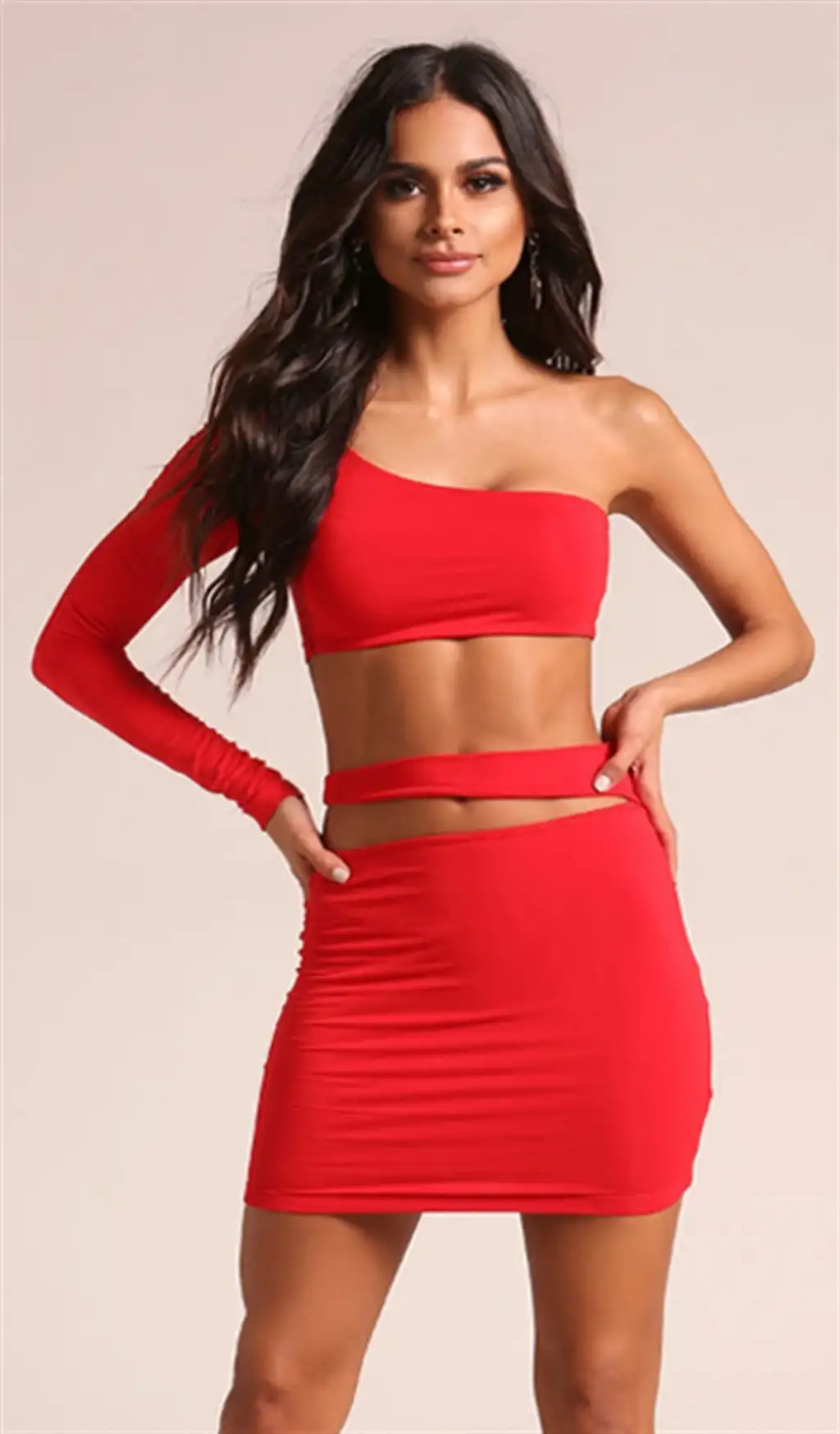 Özel tasarım asimetrik bluz ve etek takım. Likralı esnek Dabany kumaştan üretilmiştir. Beden ve renk seçenekleri mevcuttur.