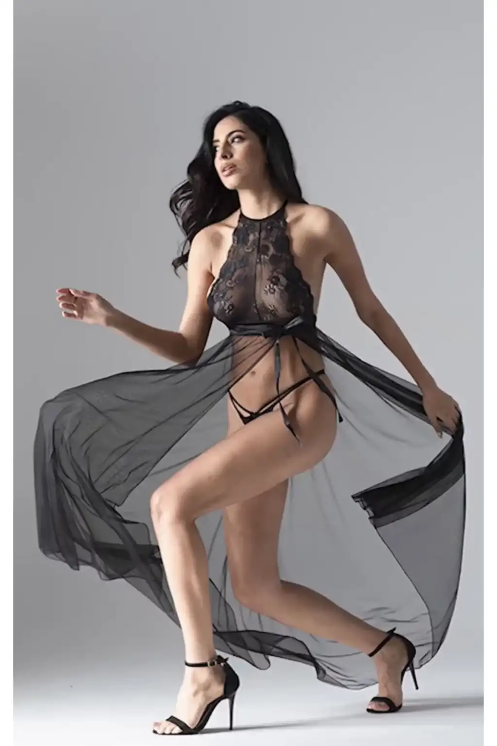 Giyim Siyah Dantelli Tül Gecelik - M075