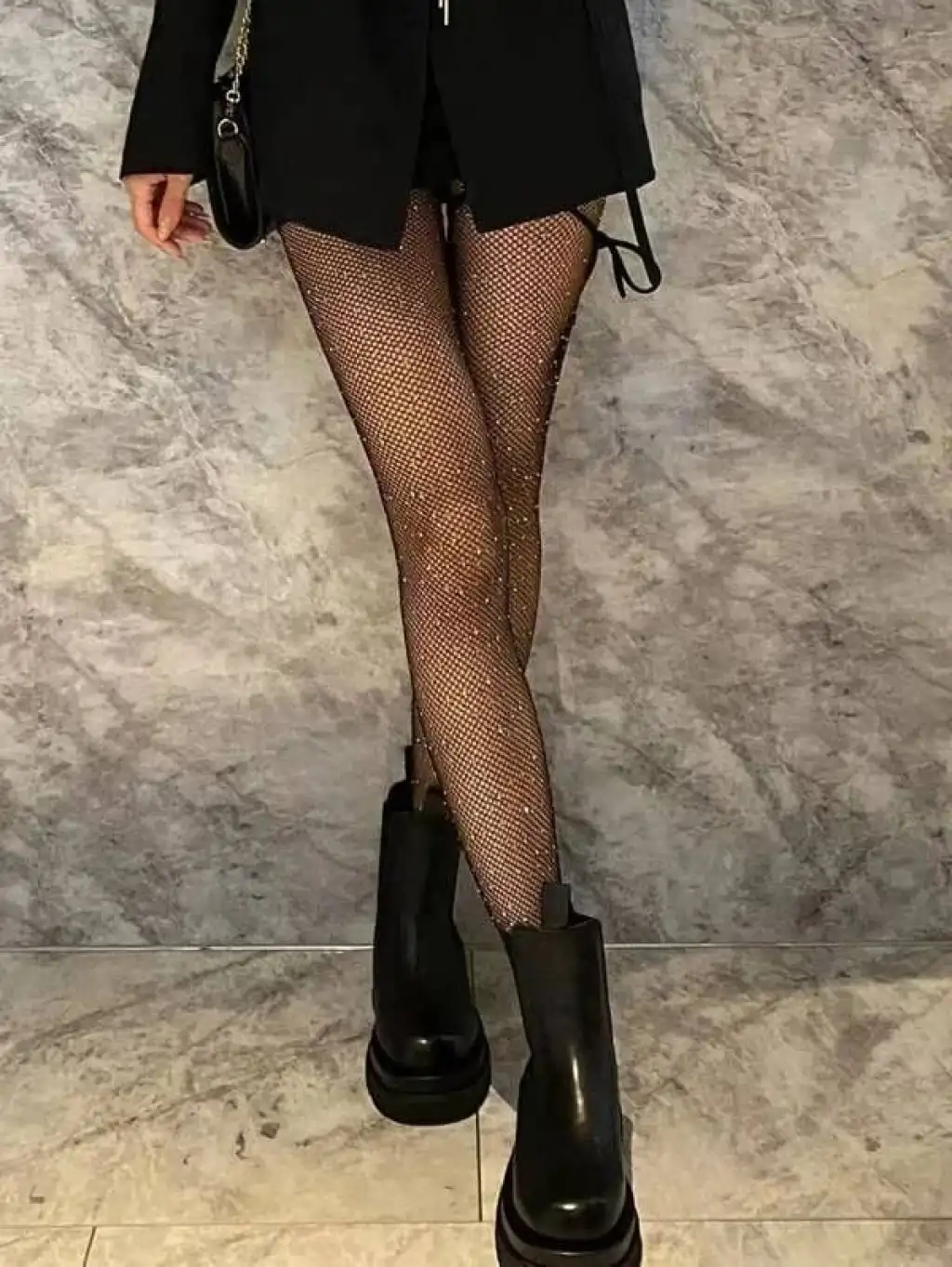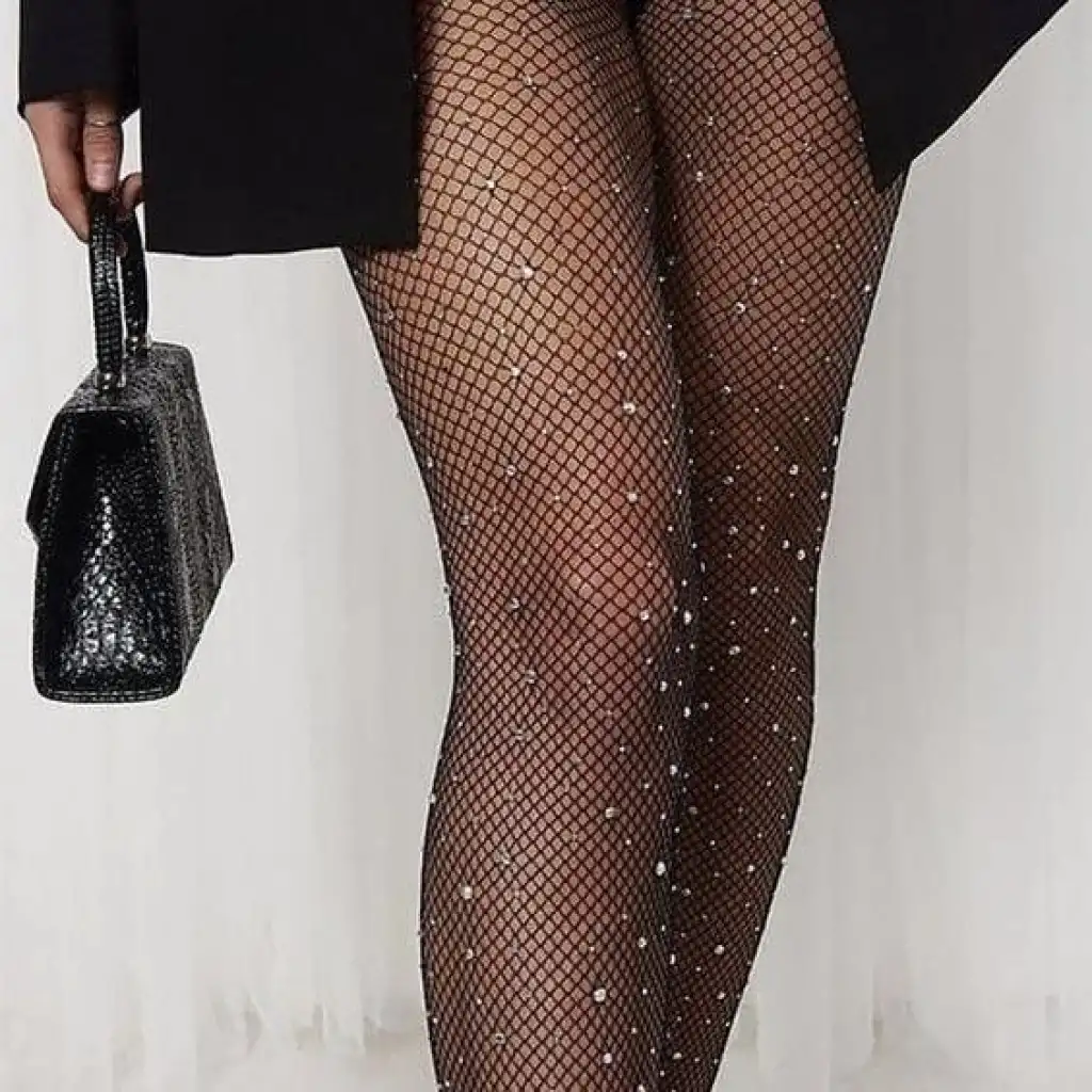 Giyim Siyah File Taşlı Çorap