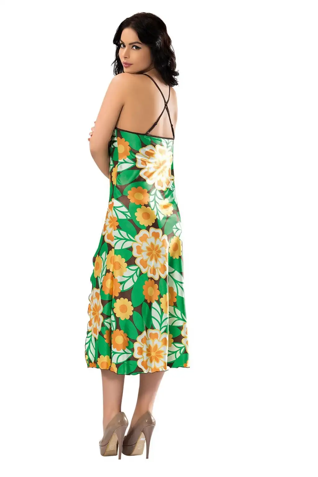 Yeşil Yırtmaçlı Saten Gecelil - 082