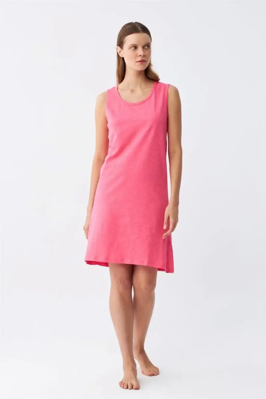 Çamaşır Kenti markasının şık ve rahat tasarımına sahip Kadın Kalın Askılı Penye Gecelik Fuşya, günün yorgunluğunu üzerinizden atmanızı sağlar. Özellikler: