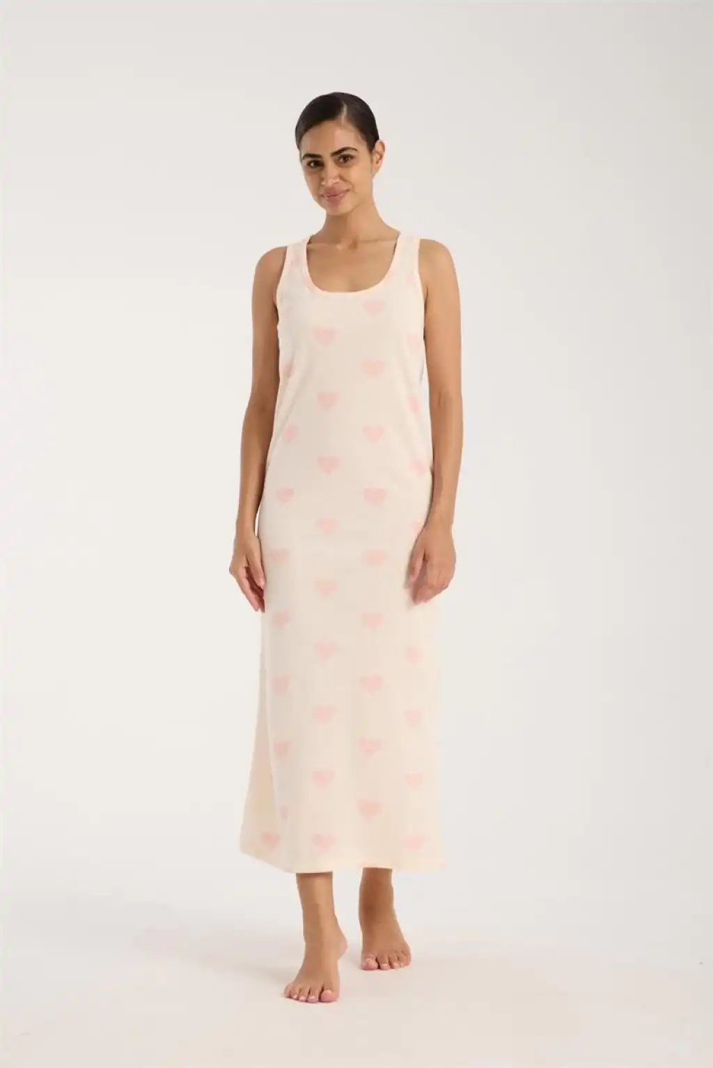 Çamaşır Kenti'nin şık tasarımlı Kadın Kalın Askılı Yırtmaçlı Uzun Pudra Geceliği, konforu ve şıklığı bir arada sunuyor.