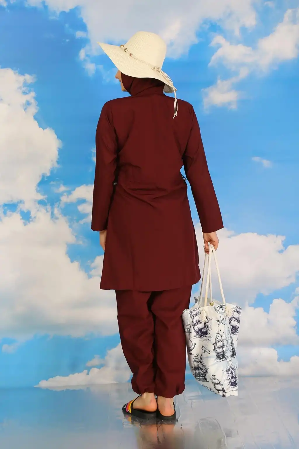 Eğer siz de plajda tesettürlü bir şekilde şıklığı ve rahatlığı bir arada arıyorsanız, Çamaşır Kenti'nin Tam Tesettür Bordo Mayo'sunu tercih edebilirsiniz.