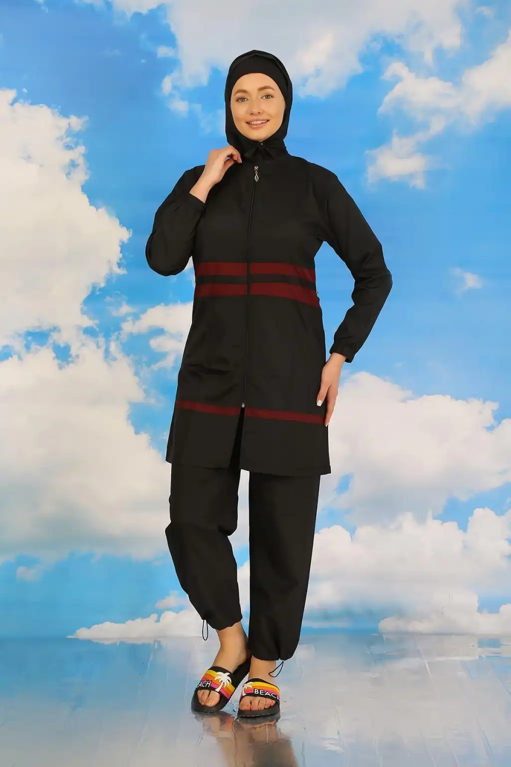Çamaşır Kenti markasının özel tasarımı olan Kadın Tam Tesettür Mayo Siyah ile plajda şıklık ve rahatlığı bir arada yaşayacaksınız.