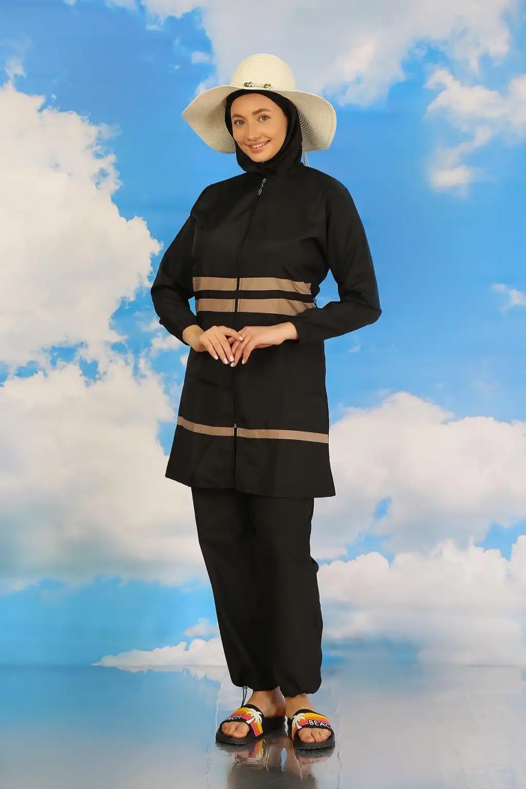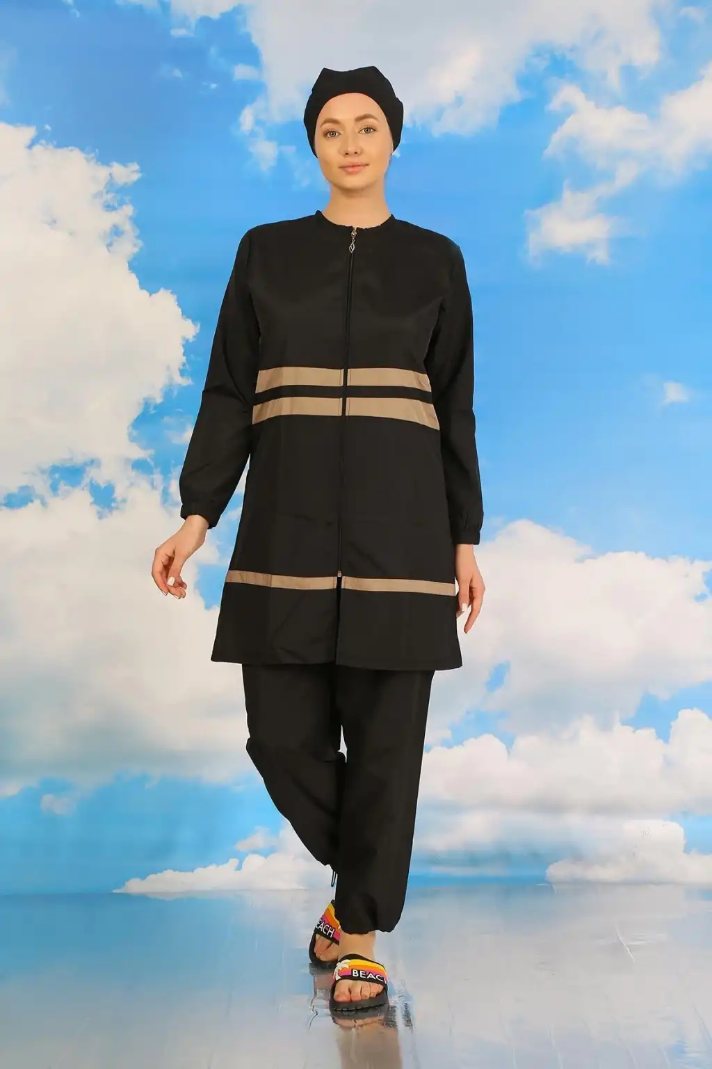 Çamaşır Kenti markasının kadınlar için özel olarak tasarladığı Tam Tesettür Mayo Siyah, plajda şıklığı ve rahatlığı bir arada arayanlar için ideal bir seçenektir.